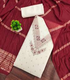 | Product Description | Limited Edition Designer Weaving Embroidered Neck And Fancy Border With Stylish Woven Dupatta Straight Style 2.00 Mtr Unstitched Dress Material Top Of White Colour Modal Fabric With 2 Mtr Santoon As Lining Inner Fabric Also Including 3.60 Mtr Unstiched Bottom Material Of White Colour Santoon Fabric With 2.00 Mtr Dupatta Of Maroon Colour Jacquard Fabric By Shadow & Saining Brand |