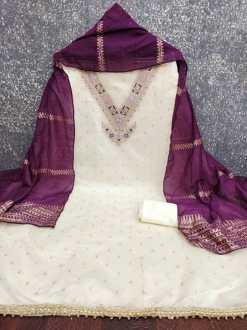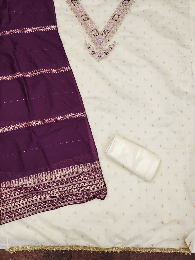 | Product Description | Bestseller Designer Weaving Embroidered Neck And Fancy Border With Stylish Woven Dupatta Straight Style 2.00 Mtr Unstitched Dress Material Top Of White Colour Modal Fabric With 2 Mtr Santoon As Lining Inner Fabric Also Including 3.60 Mtr Unstiched Bottom Material Of White Colour Santoon Fabric With 2.00 Mtr Dupatta Of Purple Colour Jacquard Fabric By Shadow & Saining Brand |