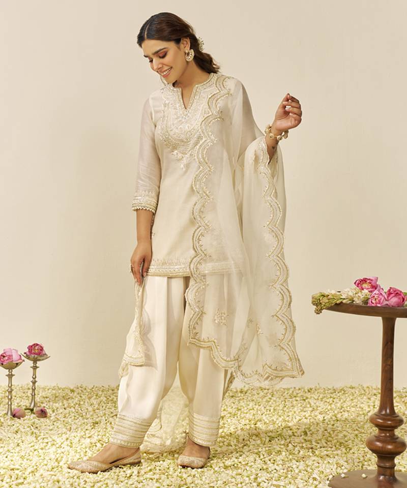 | Product Description | Daisy Ivory Sara Short Kurta With Salwar And Dupatta