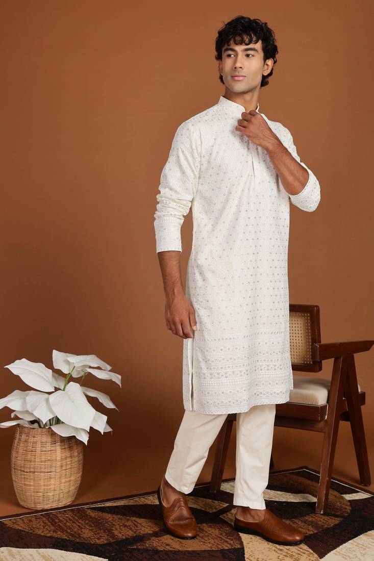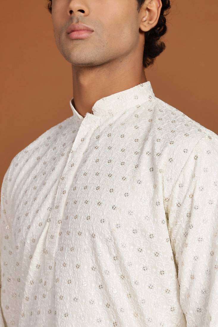| Product Name | White Golden Glitter Embroidery Daman Design Silk Kurta Pajama | |