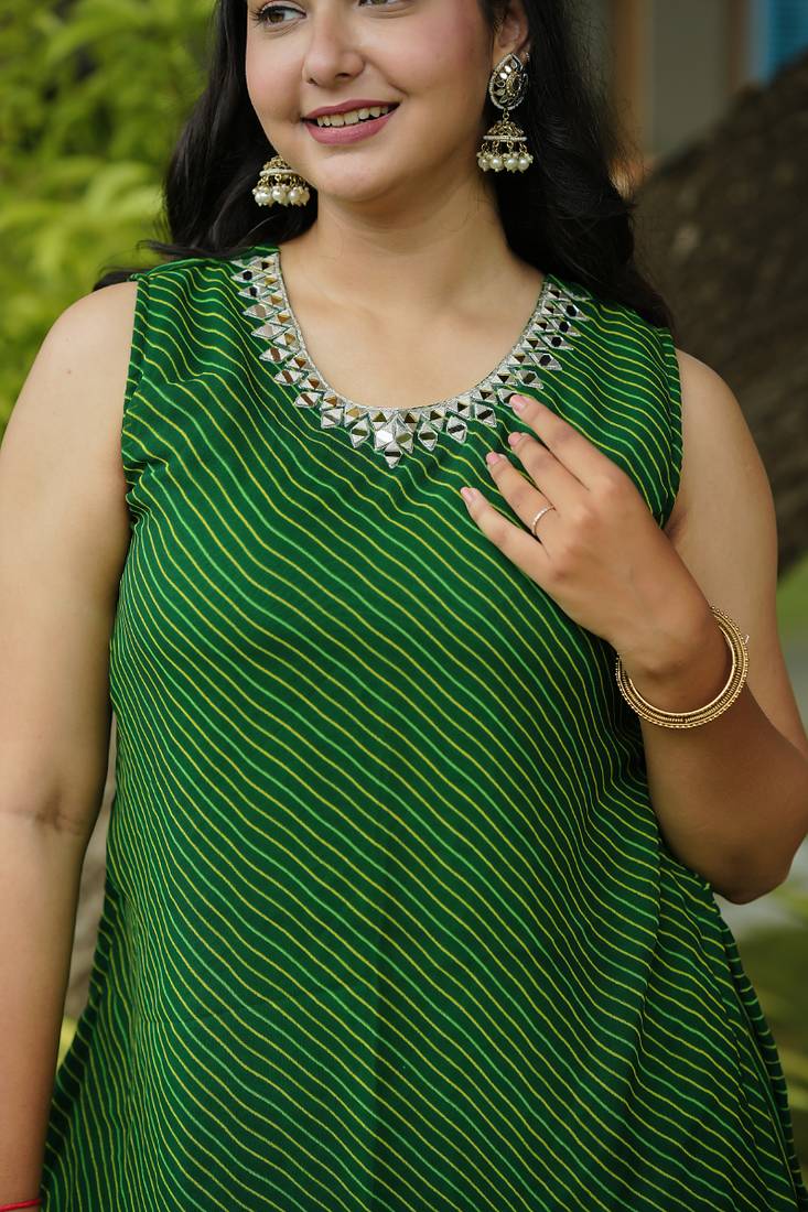 Product Name | Green Leheriya Embroidered Kurta With Palazo | |