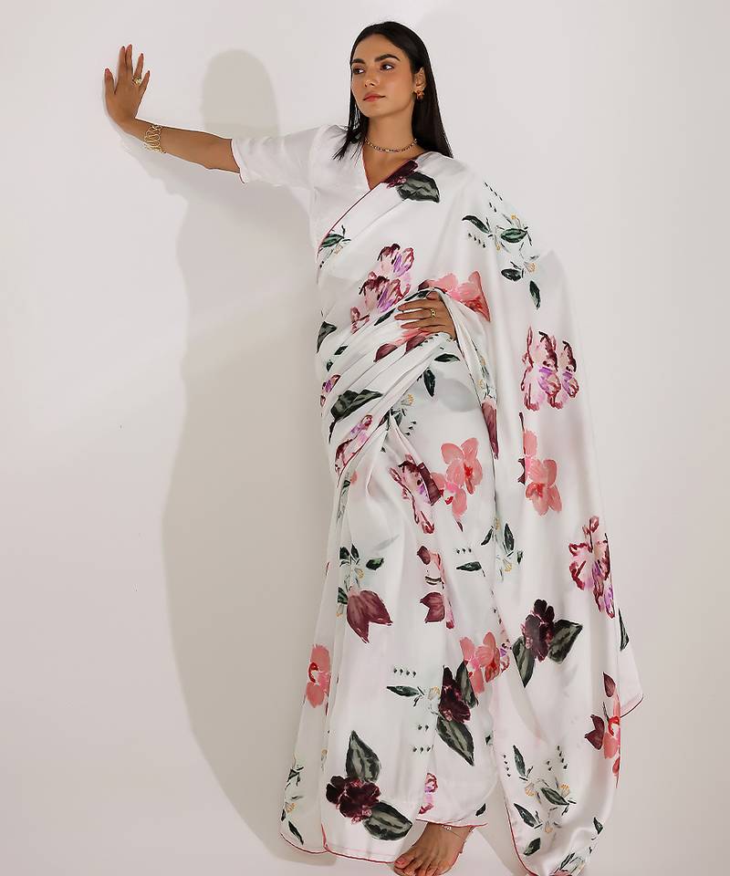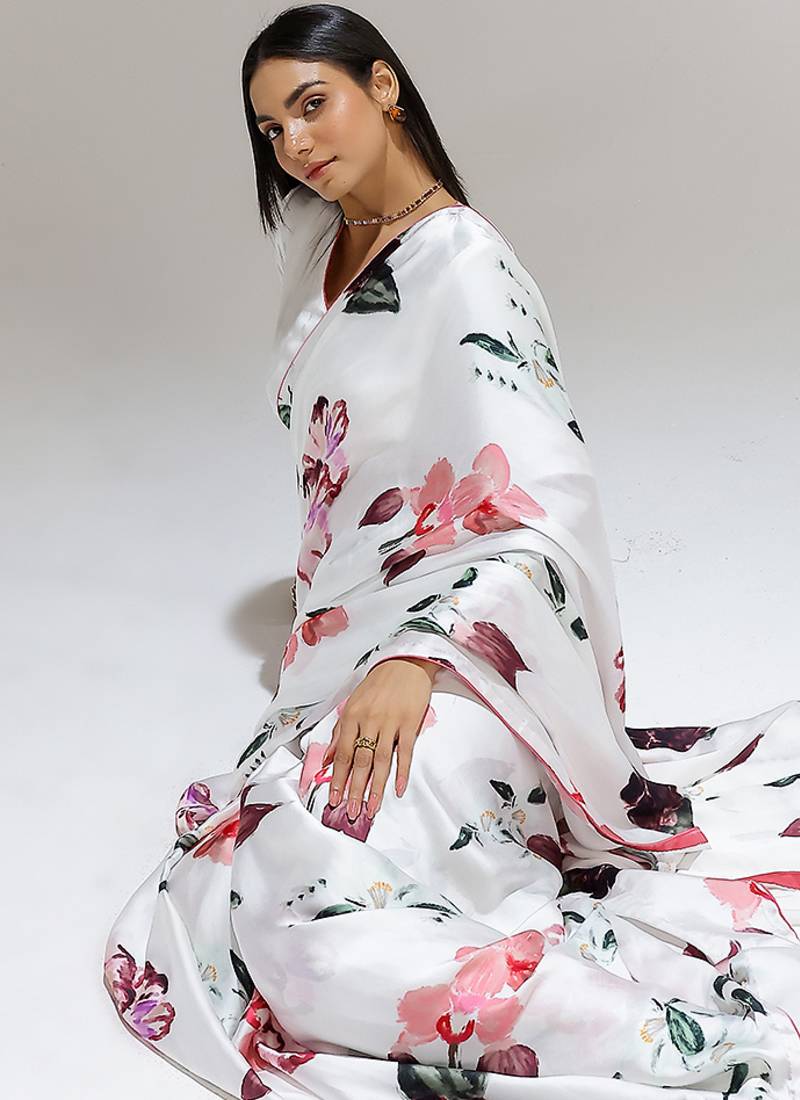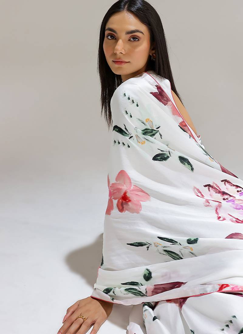 | Product Description | This White Printed Georgette Saree Exudes Graceful Charm With Its Lightweight, Flowing Drape And Refreshing Hue. The Artistic Prints Add A Touch Of Contemporary Elegance, Enhancing Its Festive Appeal. Perfect For Celebrations, Daytime Events, And Special Occasions, It Blends Effortless Comfort With Timeless, Sophisticated Style.