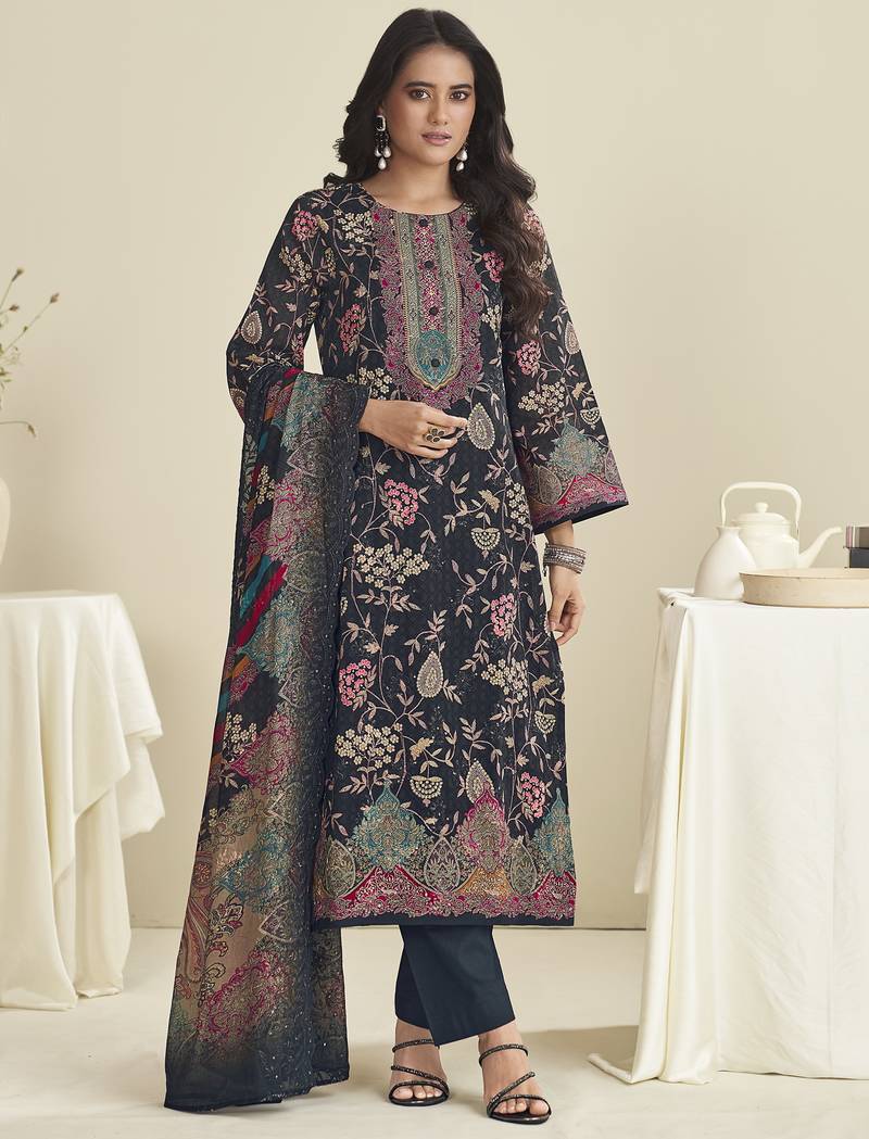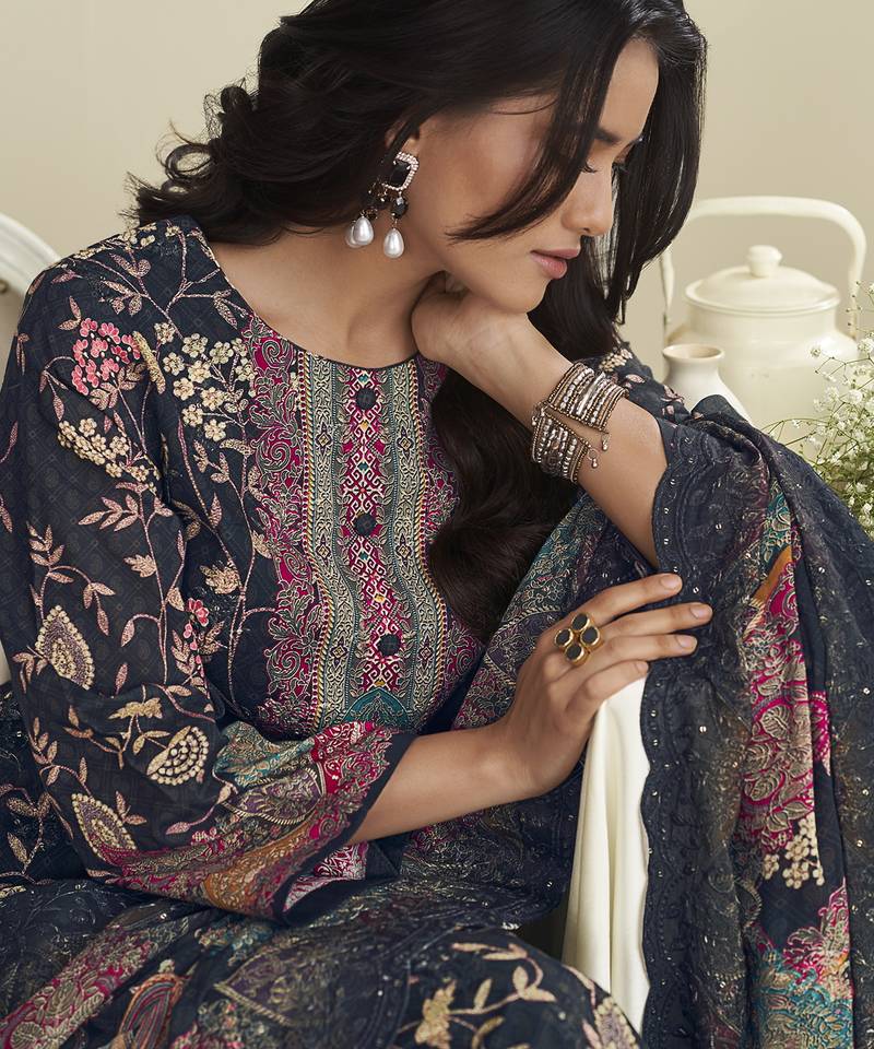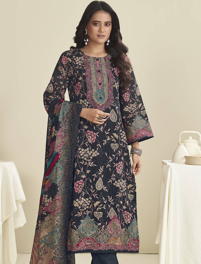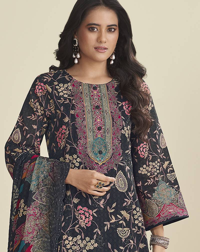 Black lawn cotton embroidered dress material unstitched