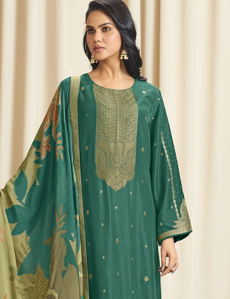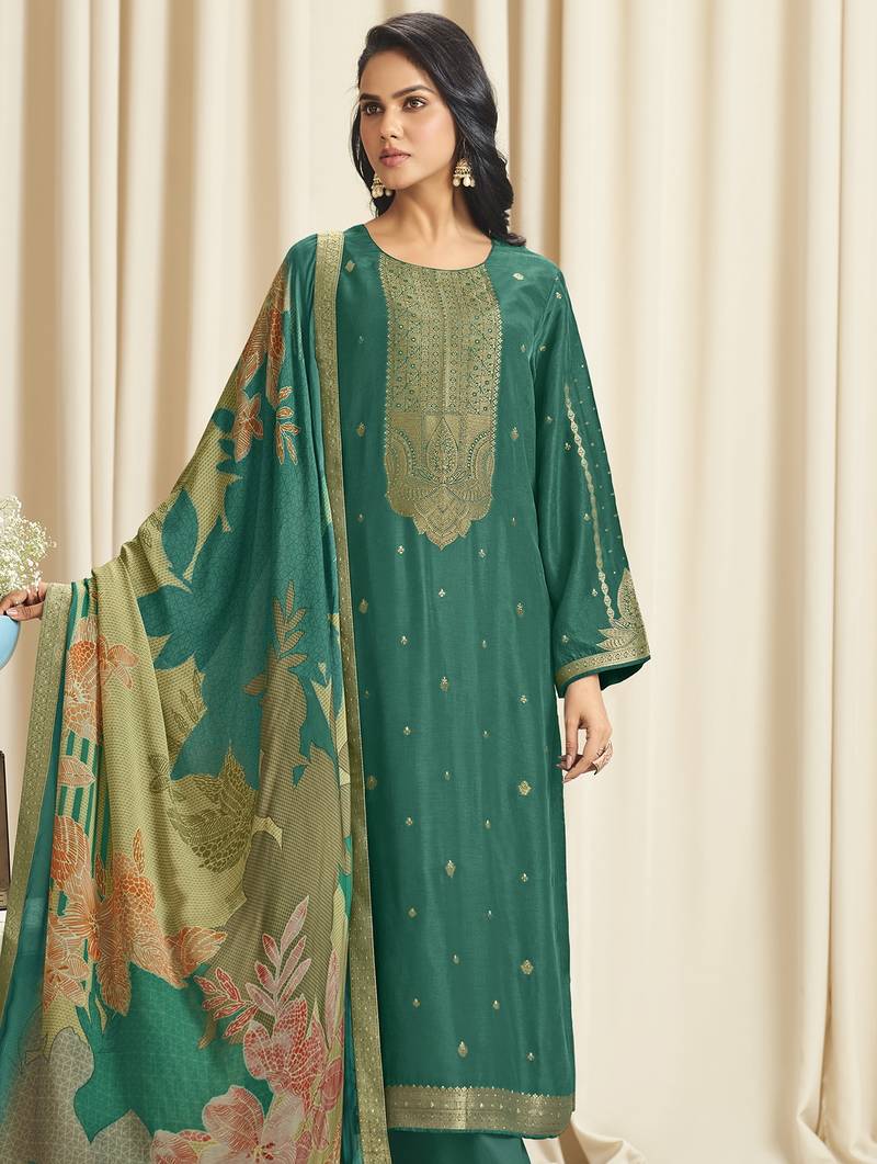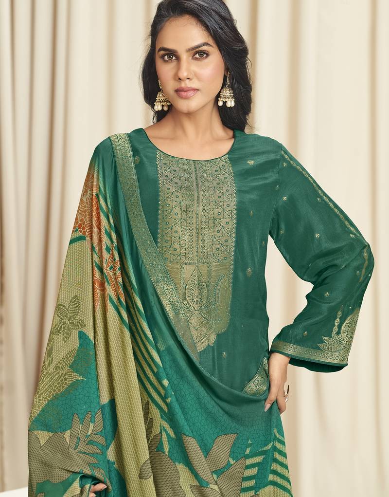 | Product Name | Green Dola Silk Jacquard Digital Printed Dress Material | |