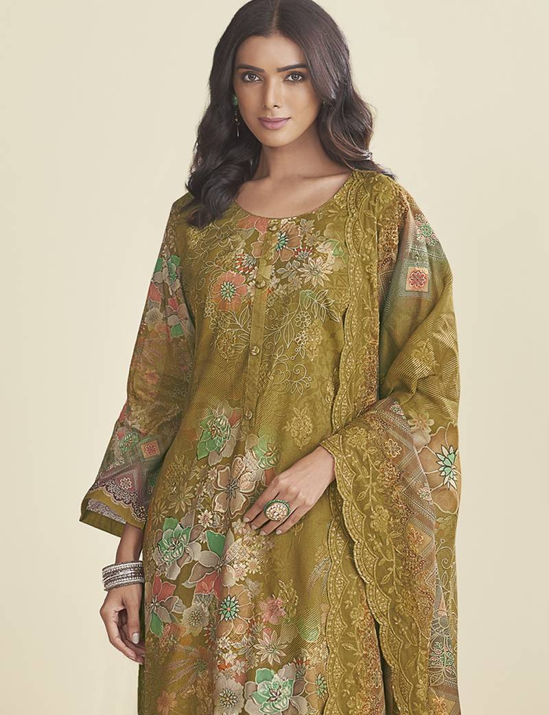 | Product Name | Green Lawn Cotton Embroidered Dress Material | |