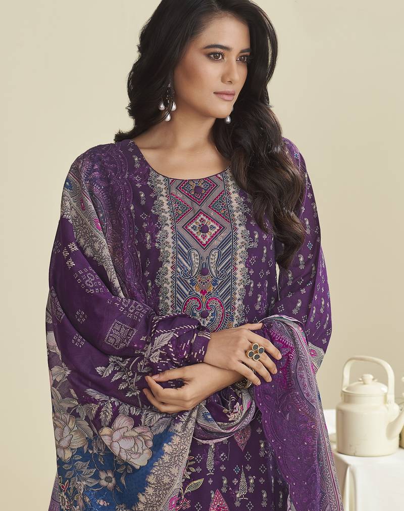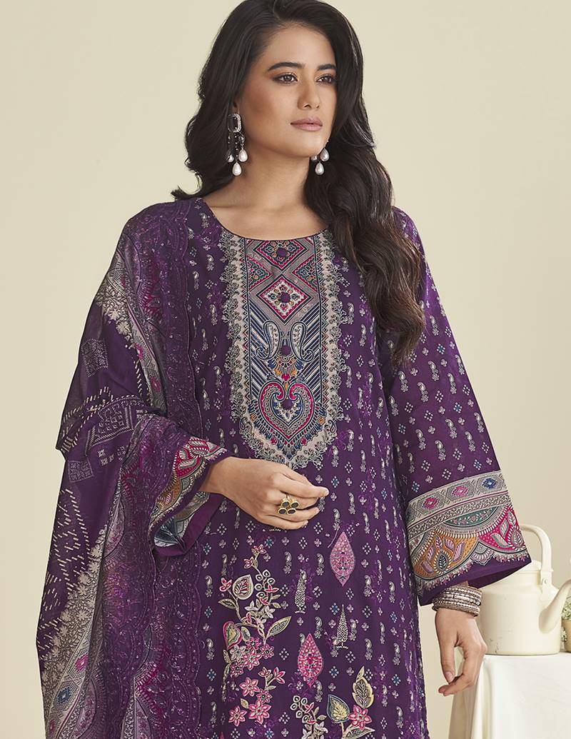 | Product Name | Purple Lawn Cotton Embroidered Dress Material | |