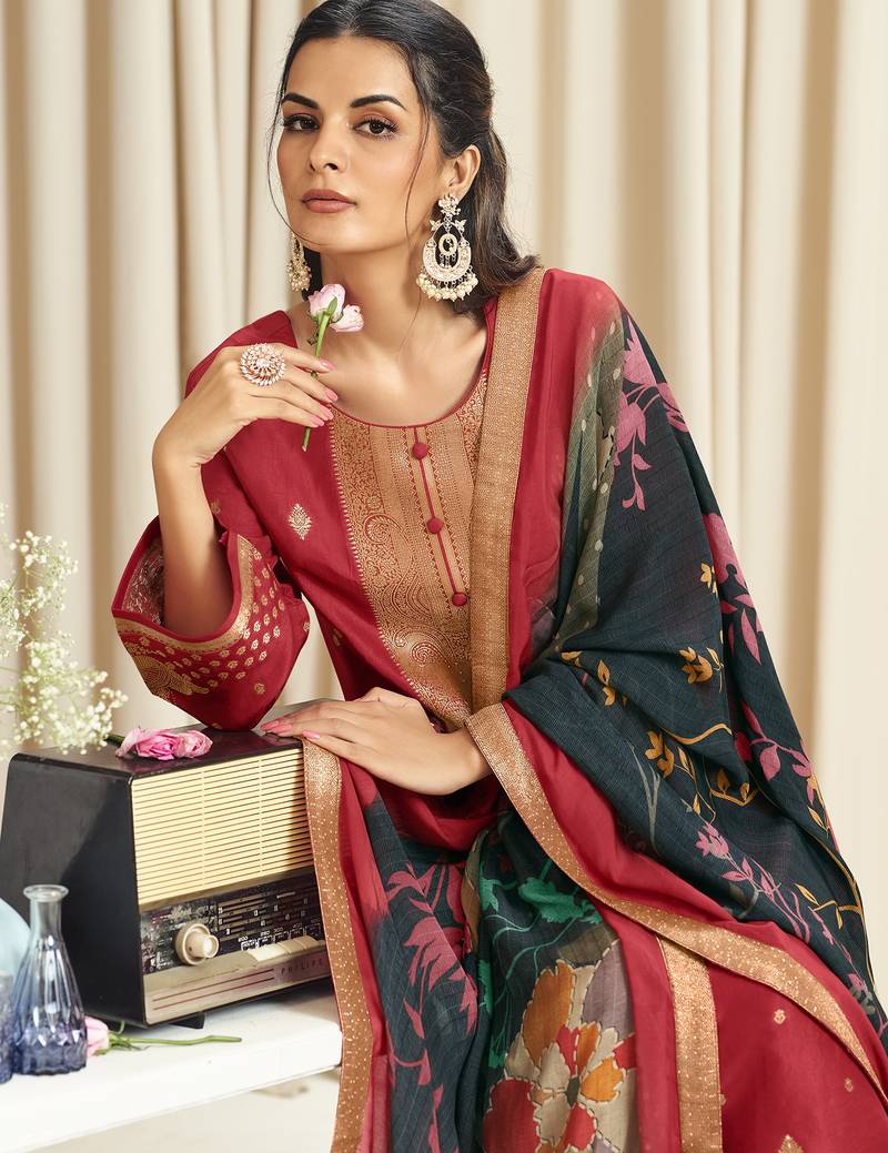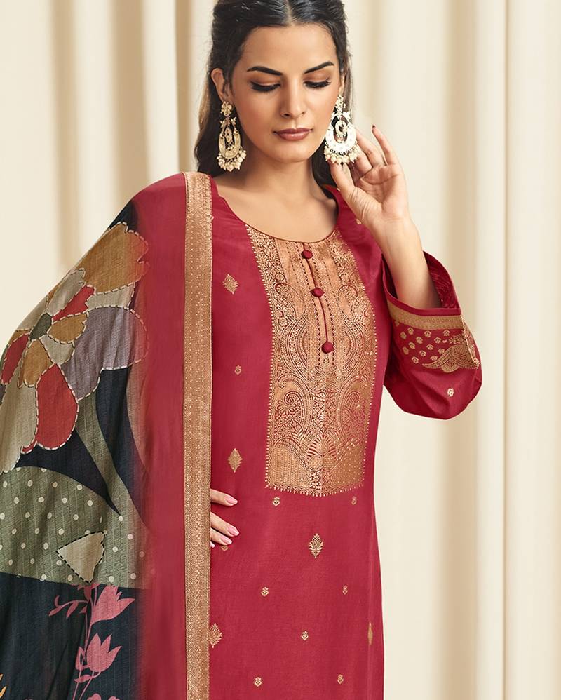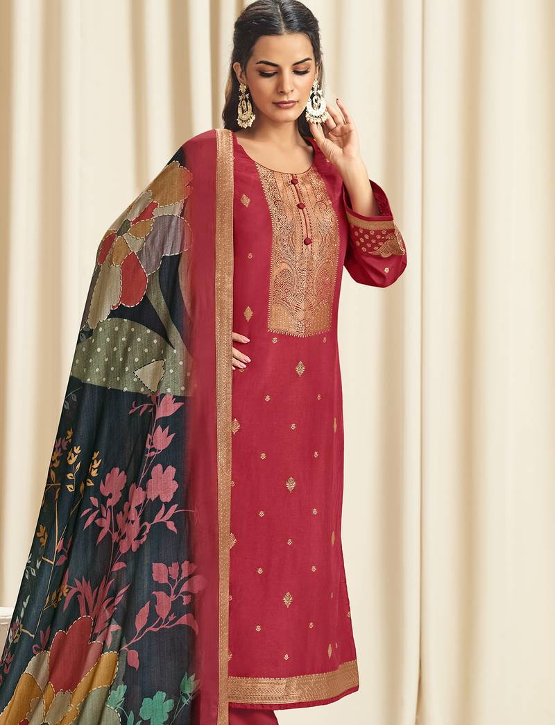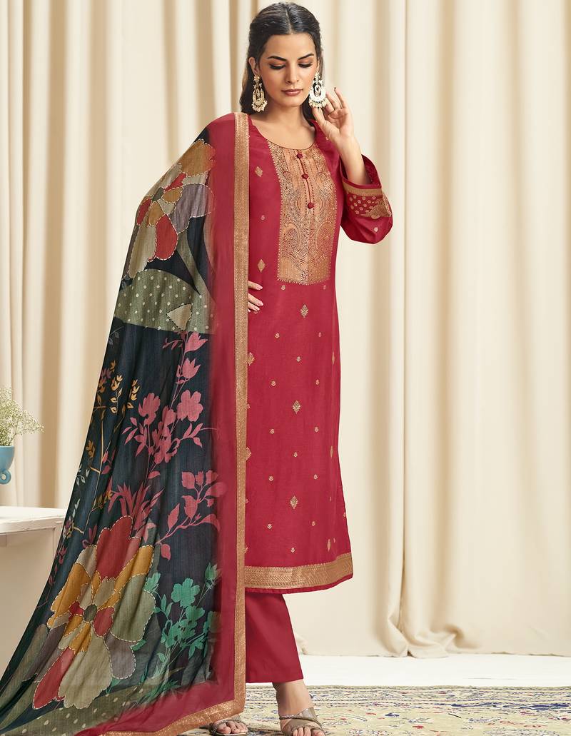 | Product Name | Red Dola Silk Jacquard Digital Printed Dress Material | |