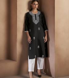 Black chikankari embroidered cotton blend kurti
