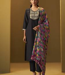 Black embroidery cotton blend straight kurta set printed dupatta set stitched