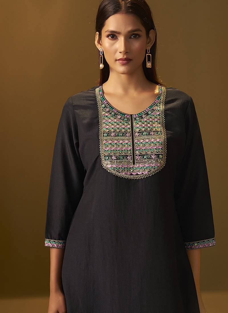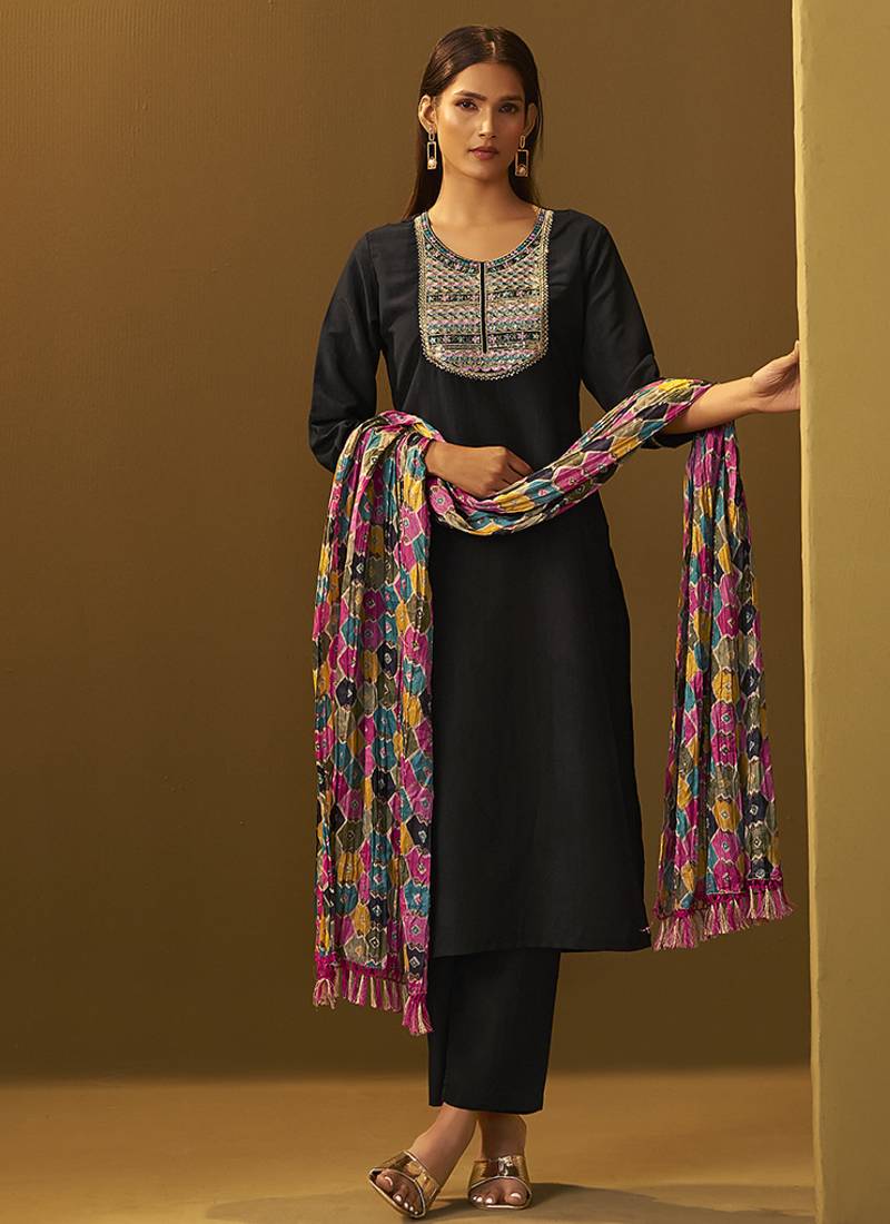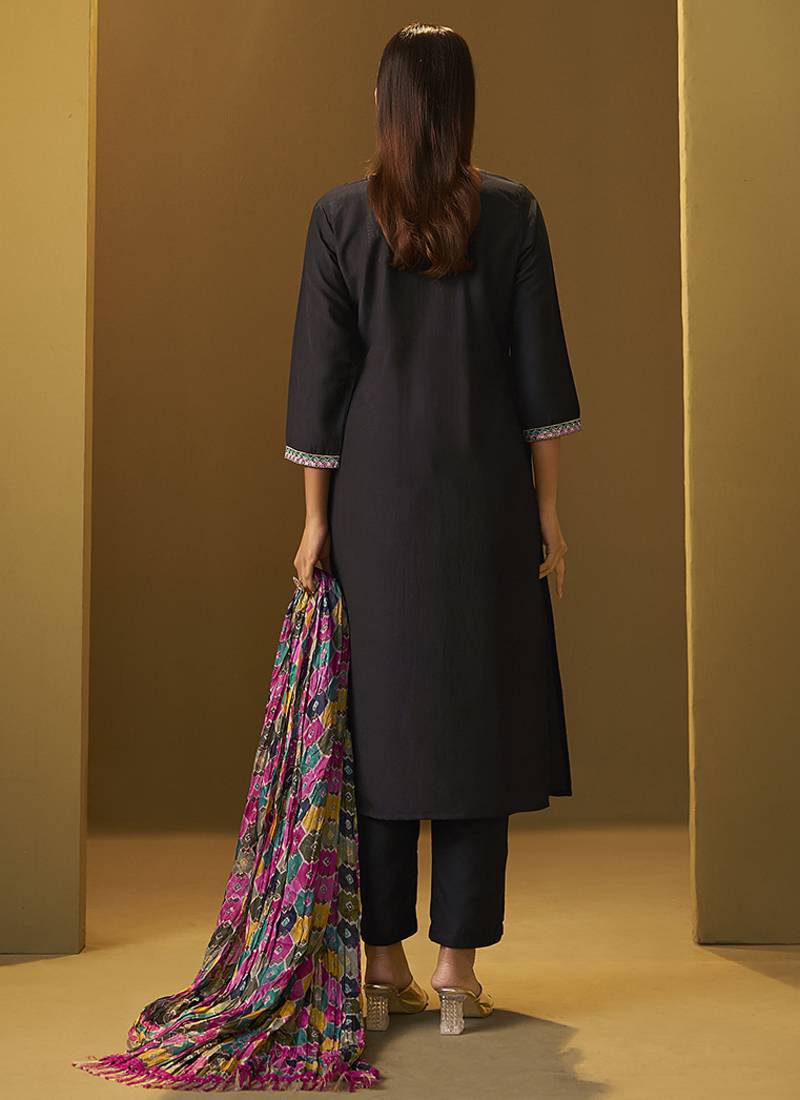 | Product Name | Black Embroidery Cotton Blend Straight Kurta Set Printed Dupatta Set | |