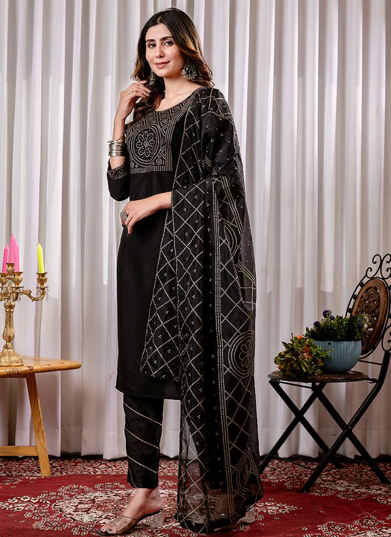 | Product Name | Black Foil Printed Chinon Cotton Blend Straight Kurta Set With Dupatta | |