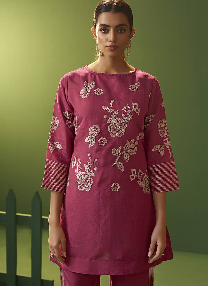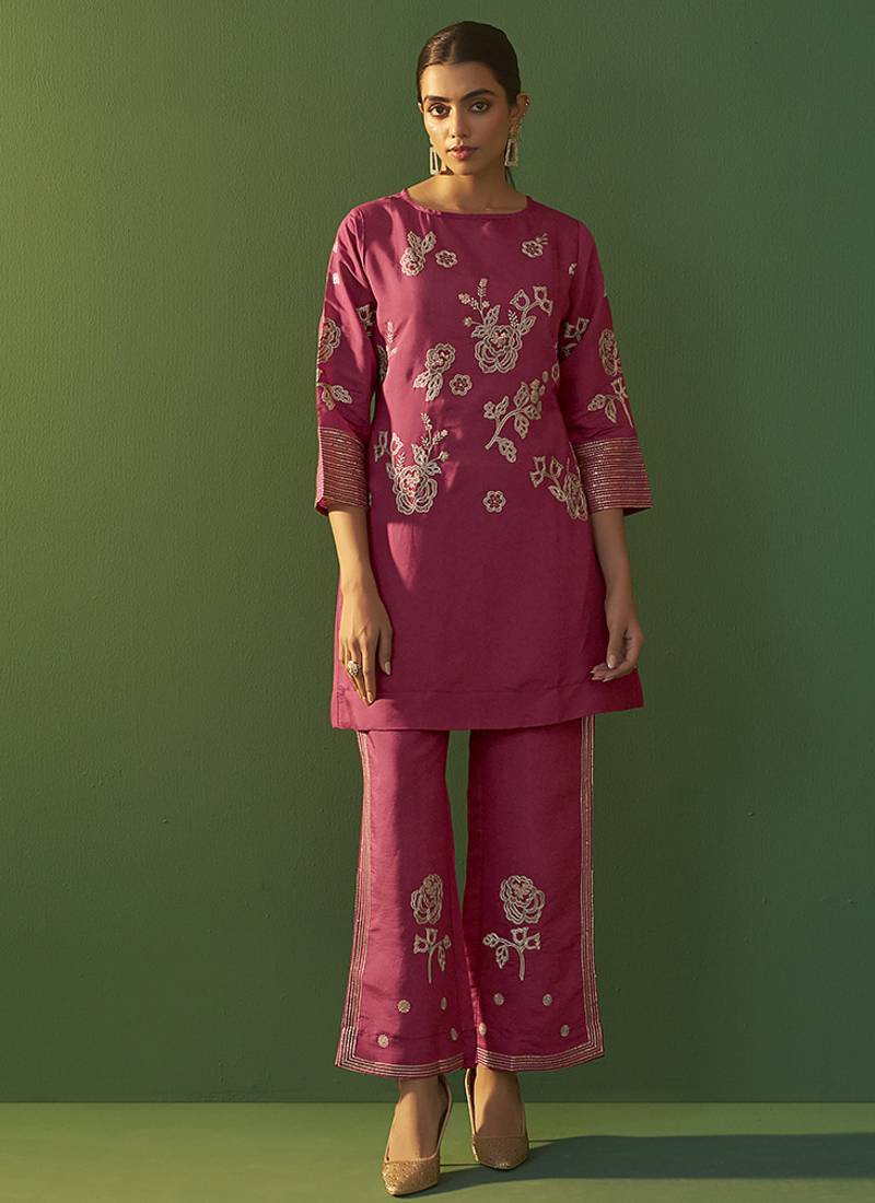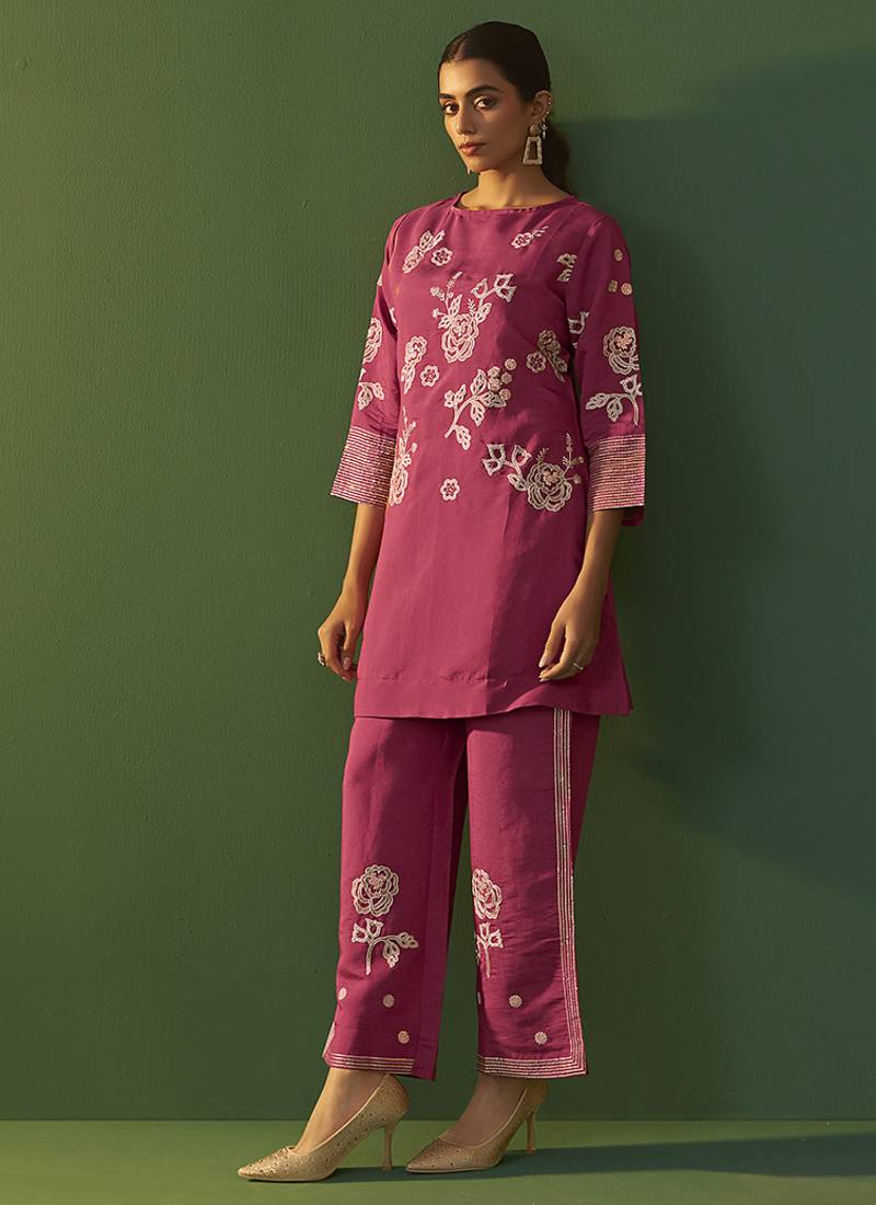 | Product Name | Bright Pink Embroidered Roman Silk Co Ord Set | |