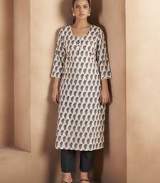 Cream & black paisley printed pure cotton kurti