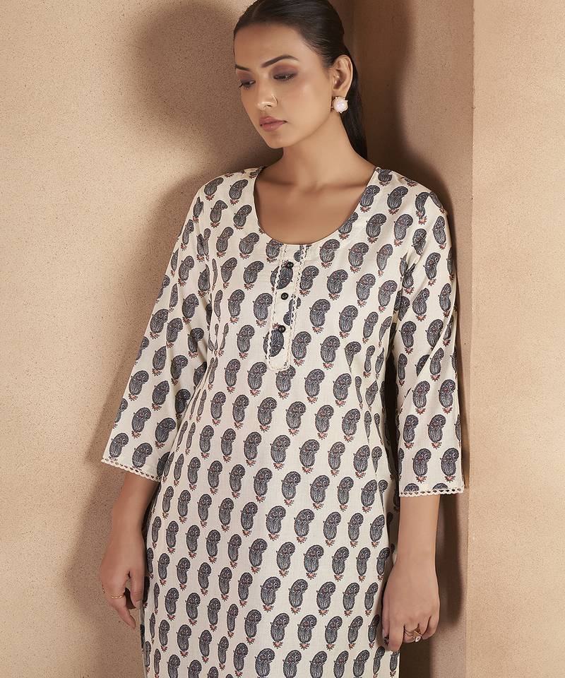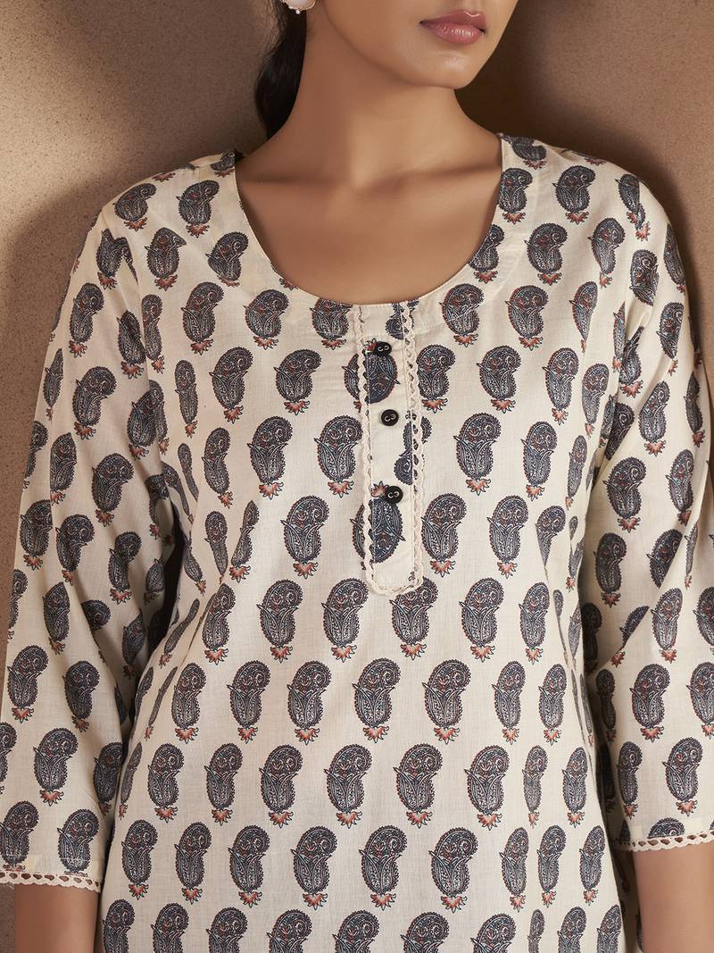 | Product Name | Cream & Black Paisley Printed Pure Cotton Kurti | |