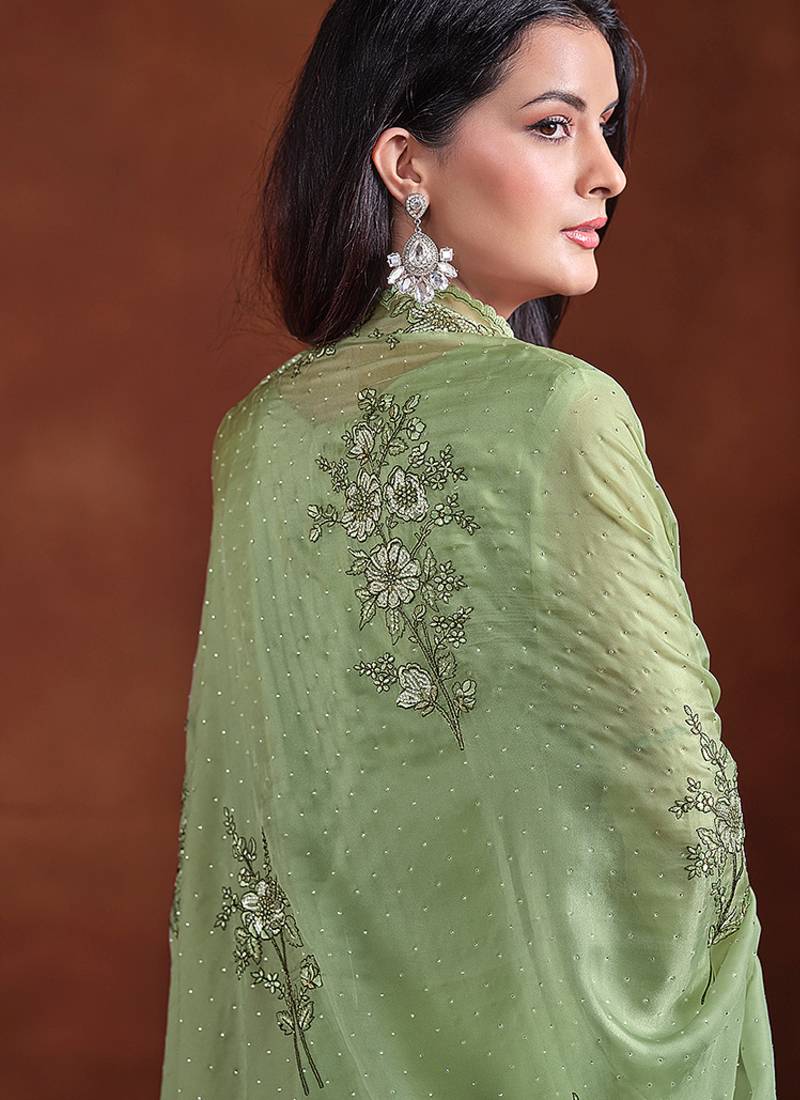 | Product Name | Green Embroidered & Jarkan Organza Straight Cut Salwar Kameez For Women | |