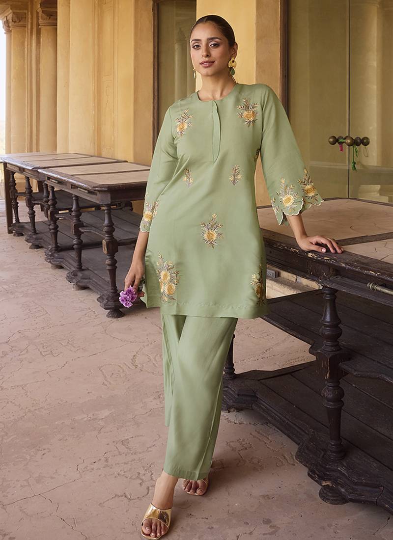 | Product Name | Green Embroidered Roman Silk Co Ord Set | |