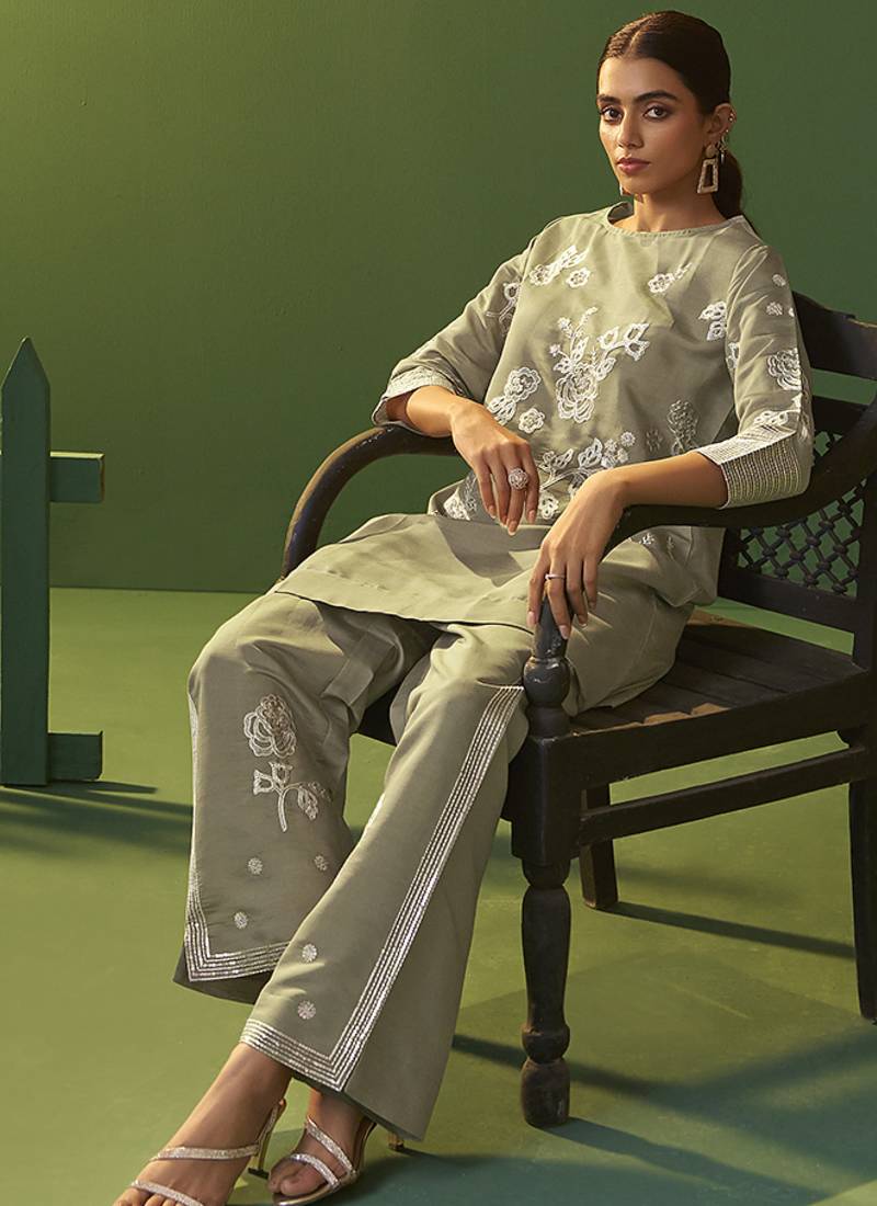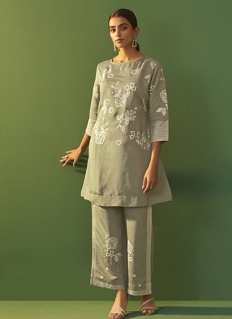 | Product Name | Grey Embroidered Roman Silk Co Ord Set | |