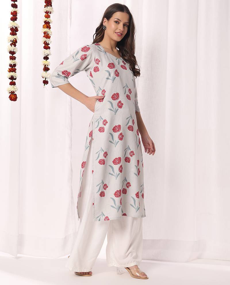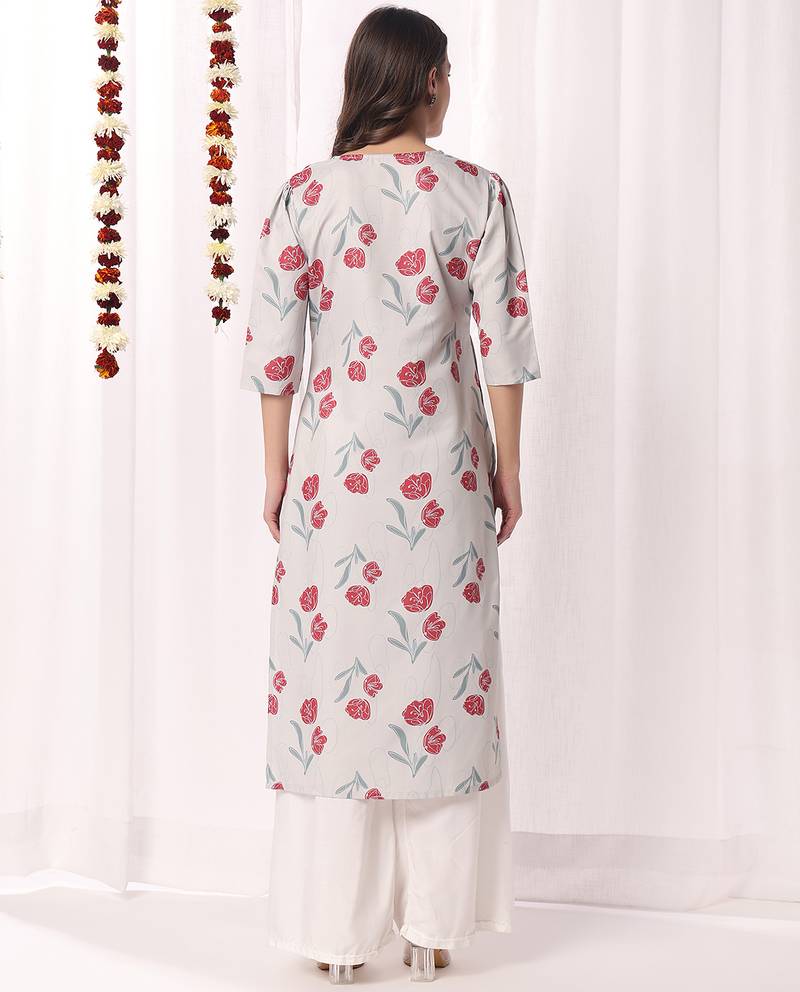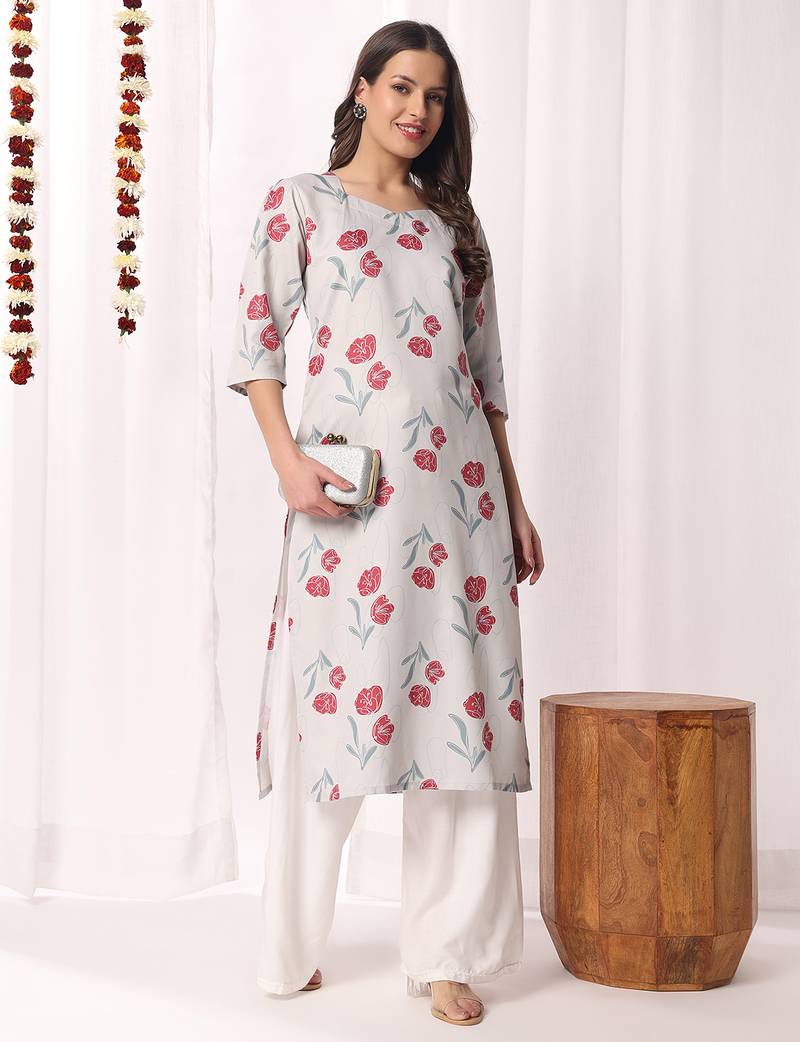 | Product Name | Light Grey Floral Printed Cotton Blend Kurti | |