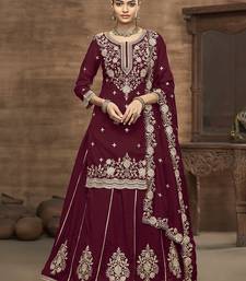 Maroon Embroidered  Silk Free Size Full Stitched Suit