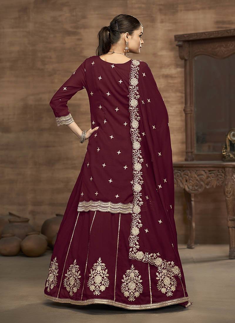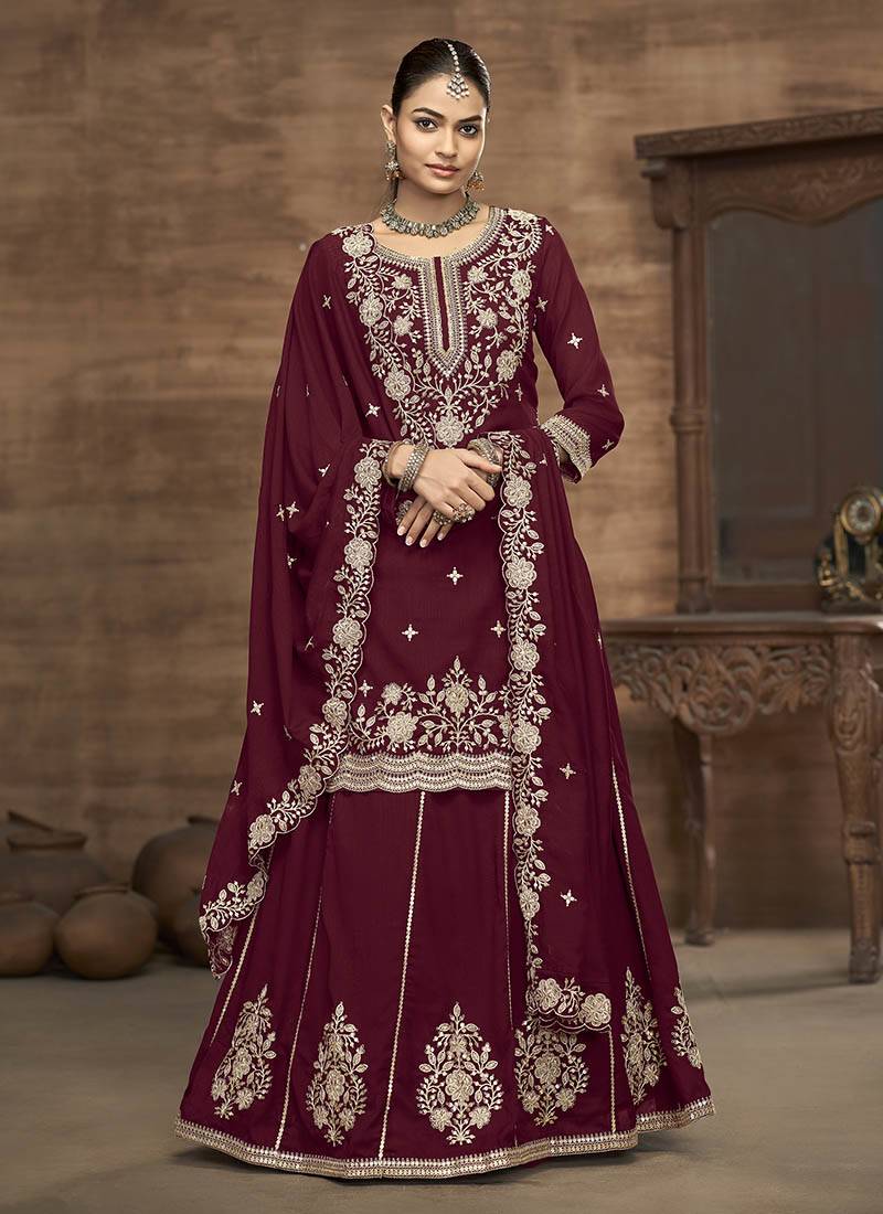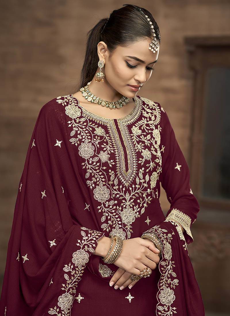 Product Name Maroon Embroidered Silk Free Size Full Stitched Suit