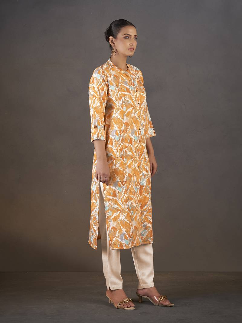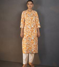 Mustard floral printed cotton blend kurti