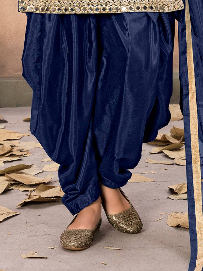 Product Name | Navy Blue Embroidered Mirror Work Silk Patiala Suits | |