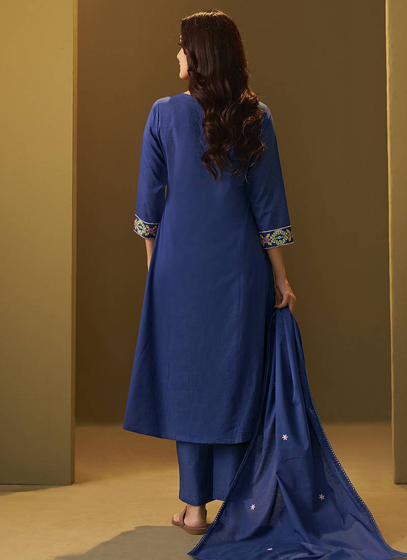 | Product Name | Navy Blue Embroidery Pure Cotton Flared Kurta Set With Dupatta | |