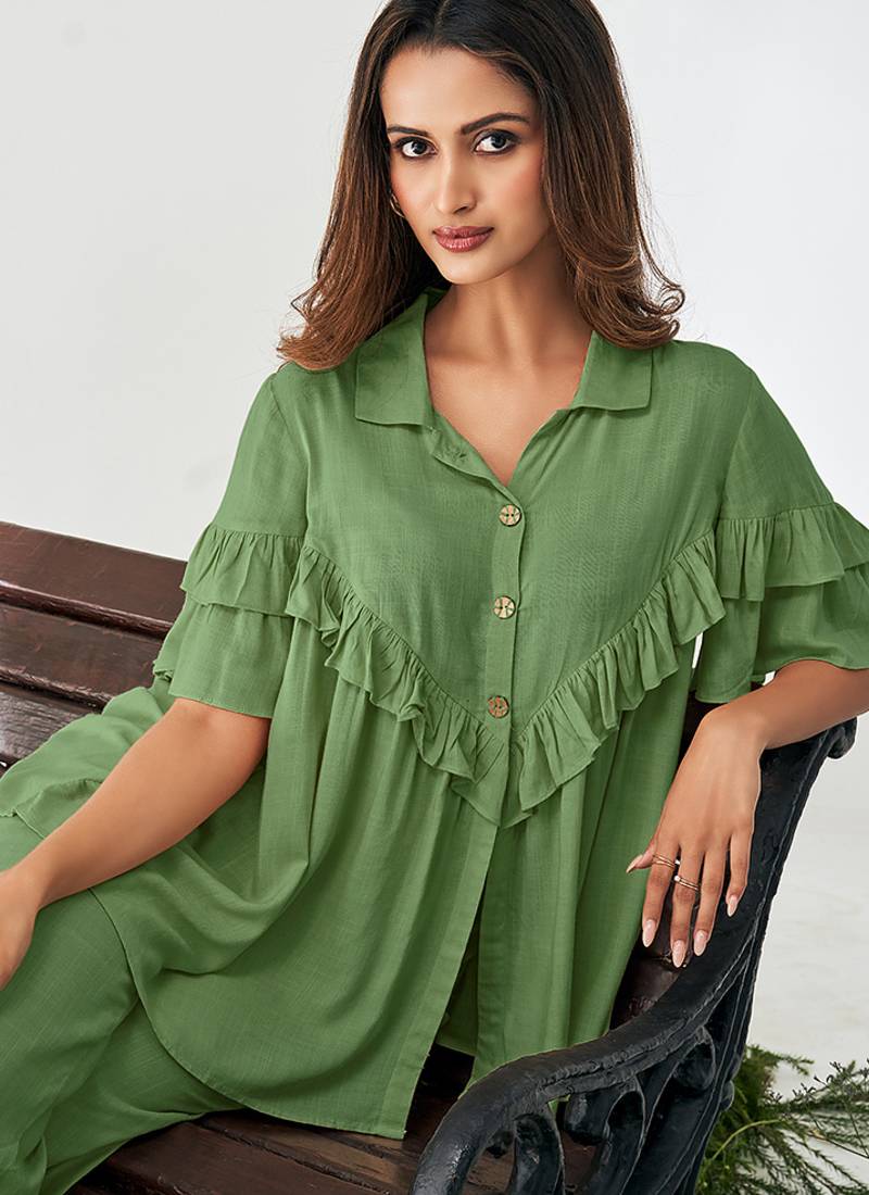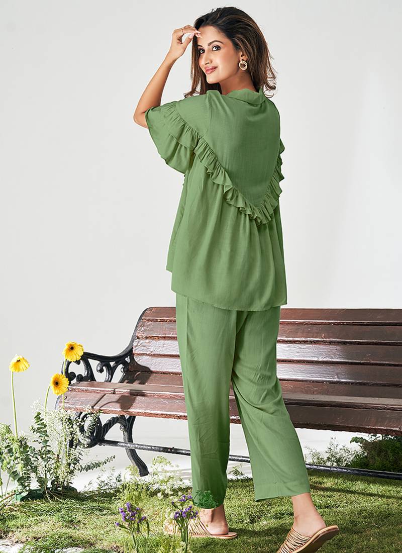 | Product Name | Olive Green Solid Viscose Rayon Slub Co Ord Set | |