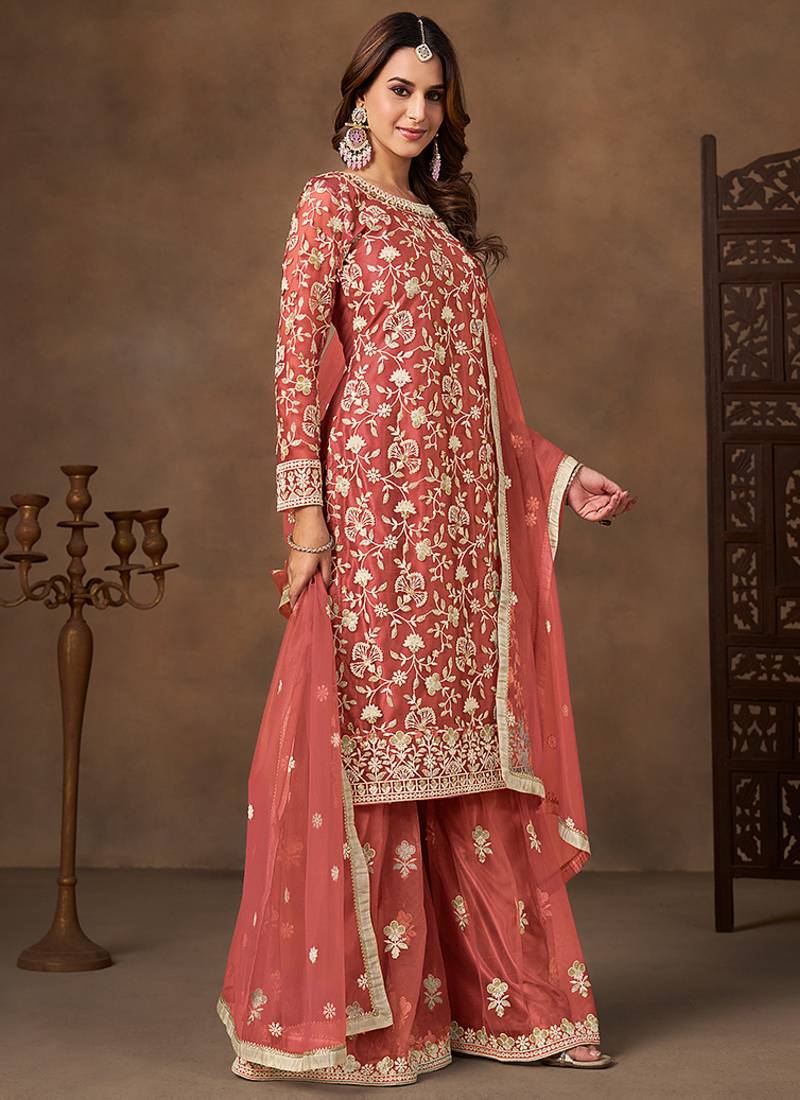 | Product Name | Orange Embroidered Net Sharara Style | |
