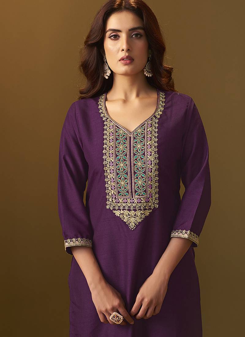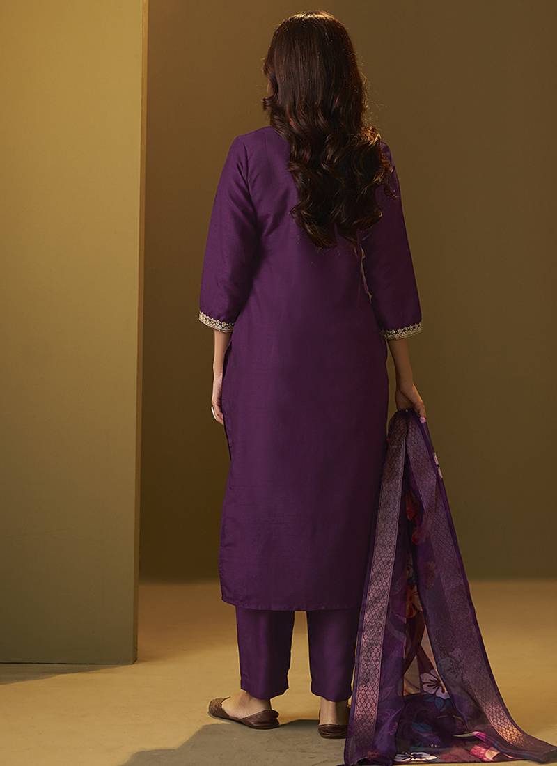 | Product Name | Purple Embroidery Cotton Blend Straight Kurta Set With Printed Dupatta | |