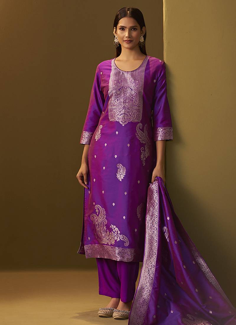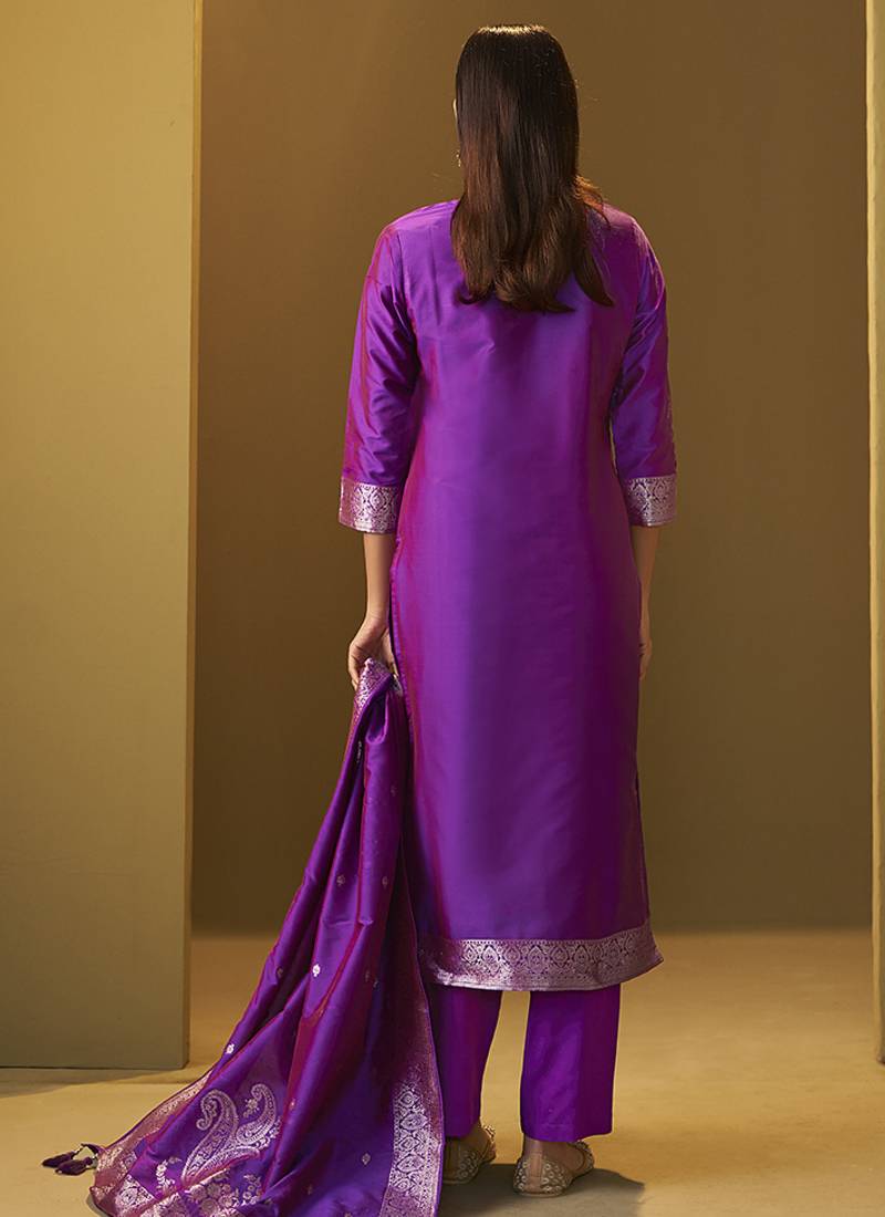 | Product Name | Purple Jacquard Art Silk Straight Kurta Set With Dupatta For Women | |