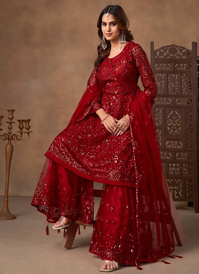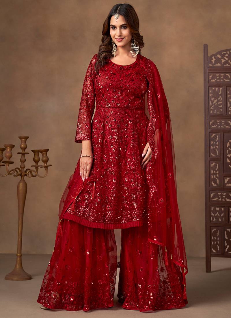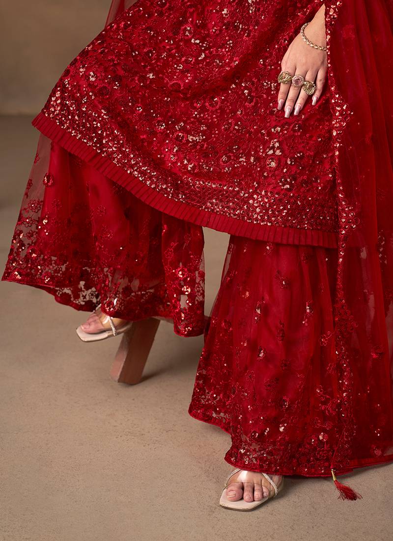 | Product Name | Red Embroidered Sequence Net Sharara Style | |
