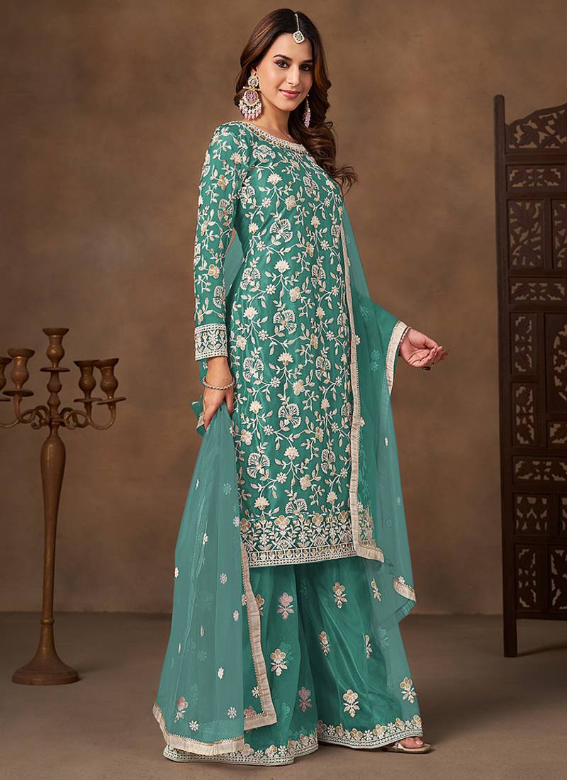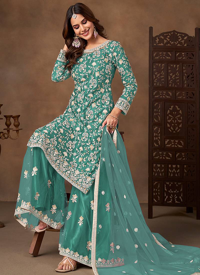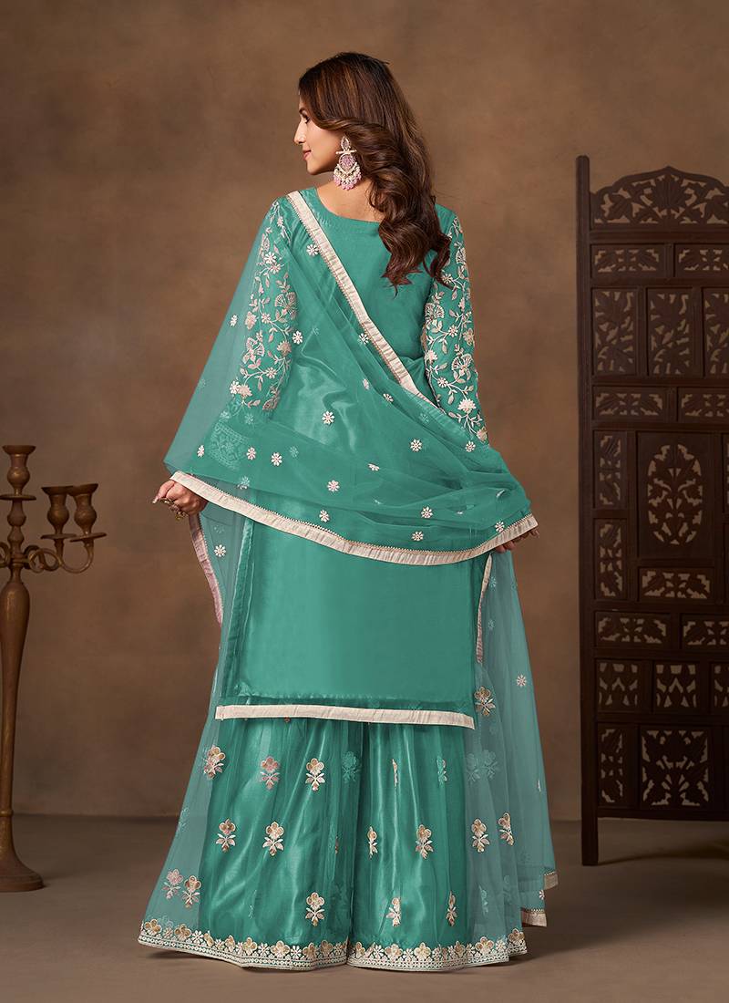 | Product Name | Sea Green Embroidered Net Sharara Style | |