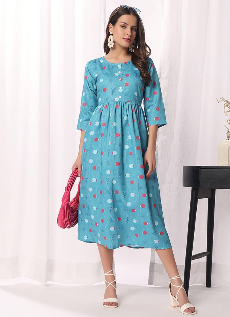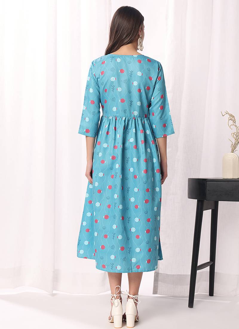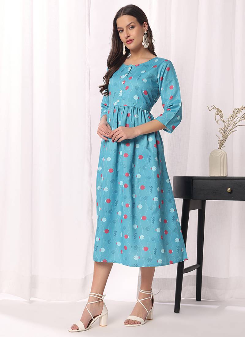 | Product Name | Sky Blue Floral Printed Cotton Blend Kurti | |