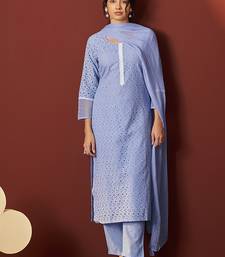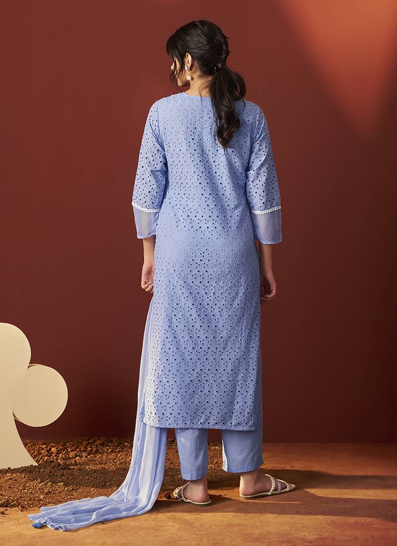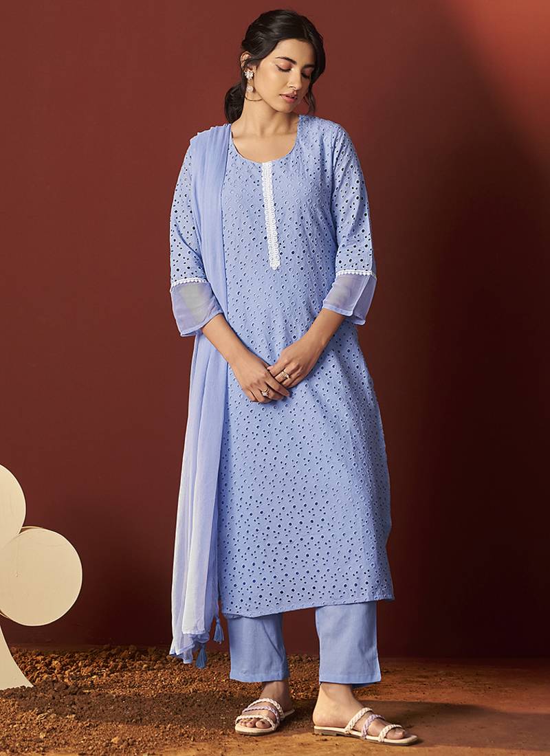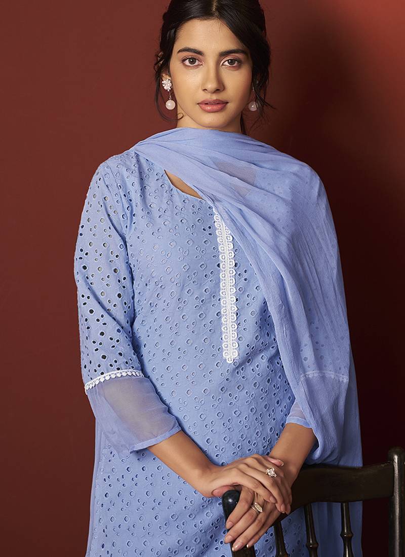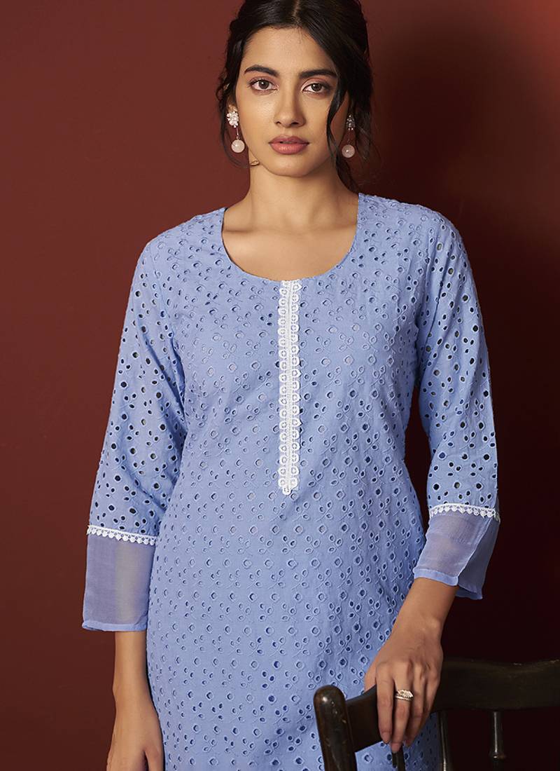 | Product Name | Sky Blue Schiffly With Lace Work Pure Cotton Straight Kurta Set With Dupatta For Women | |