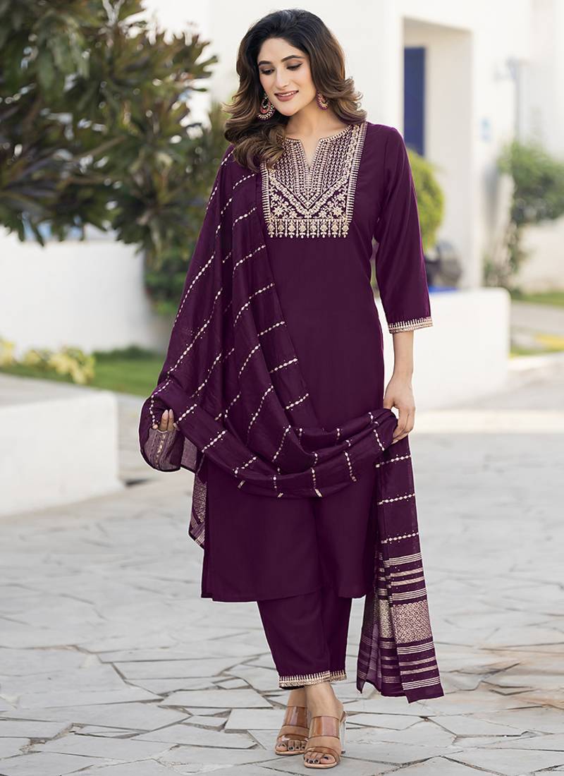 | Product Name | Wine Embroidered Chinon Straight Kurta Set With Dupatta | |