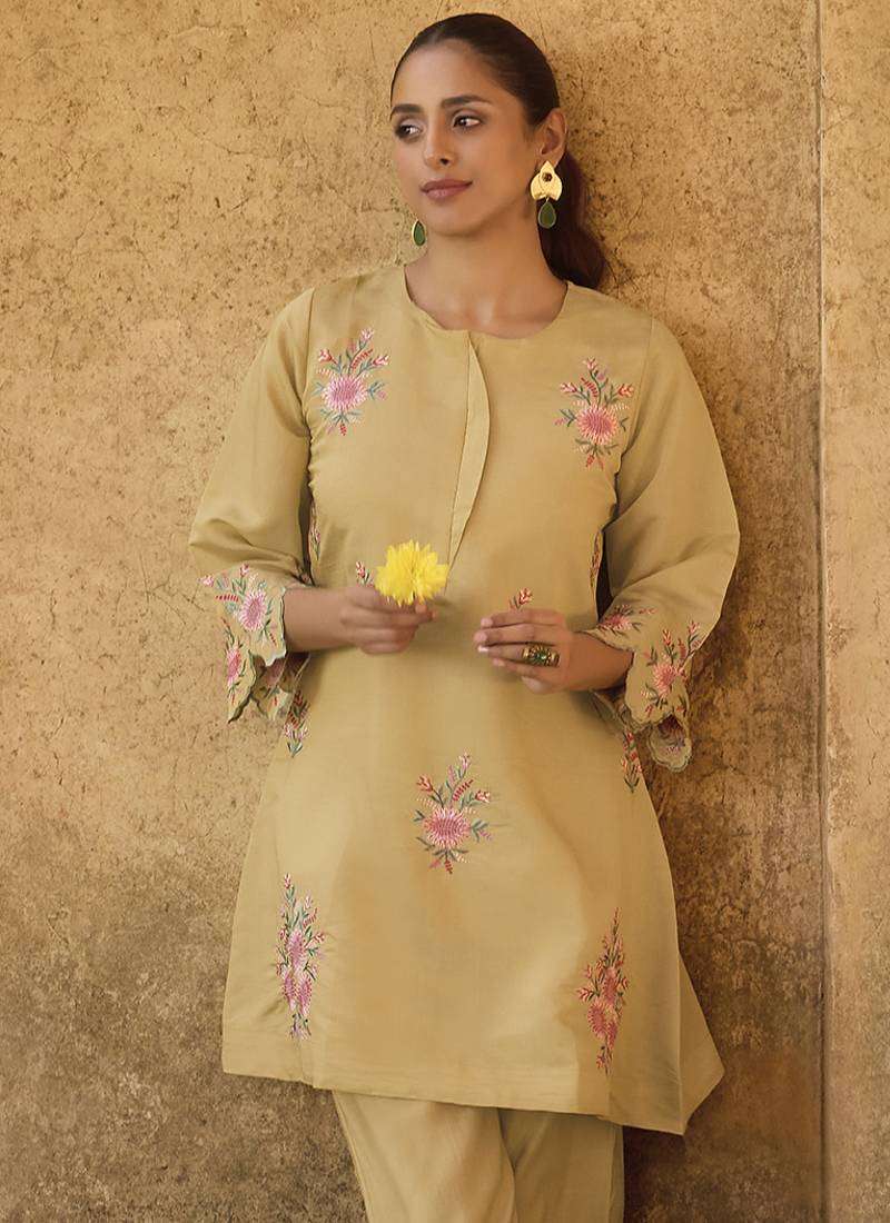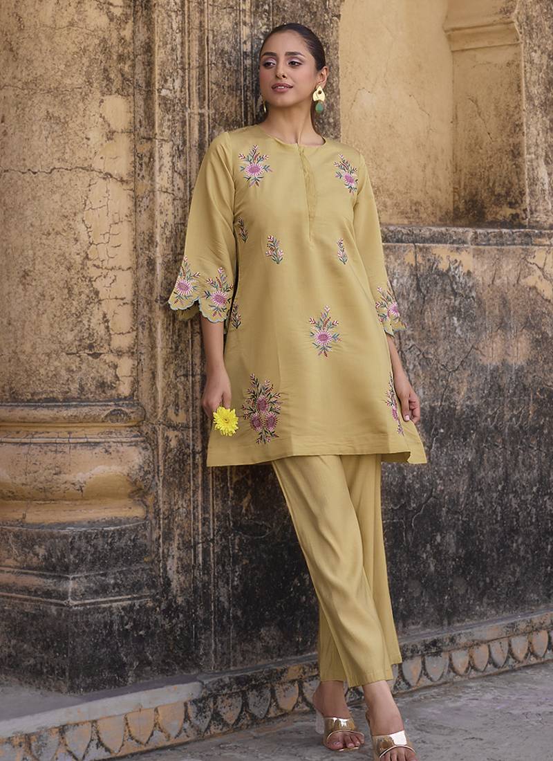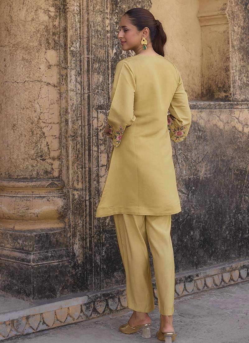 | Product Name | Yellow Embroidered Roman Silk Co Ord Set | |