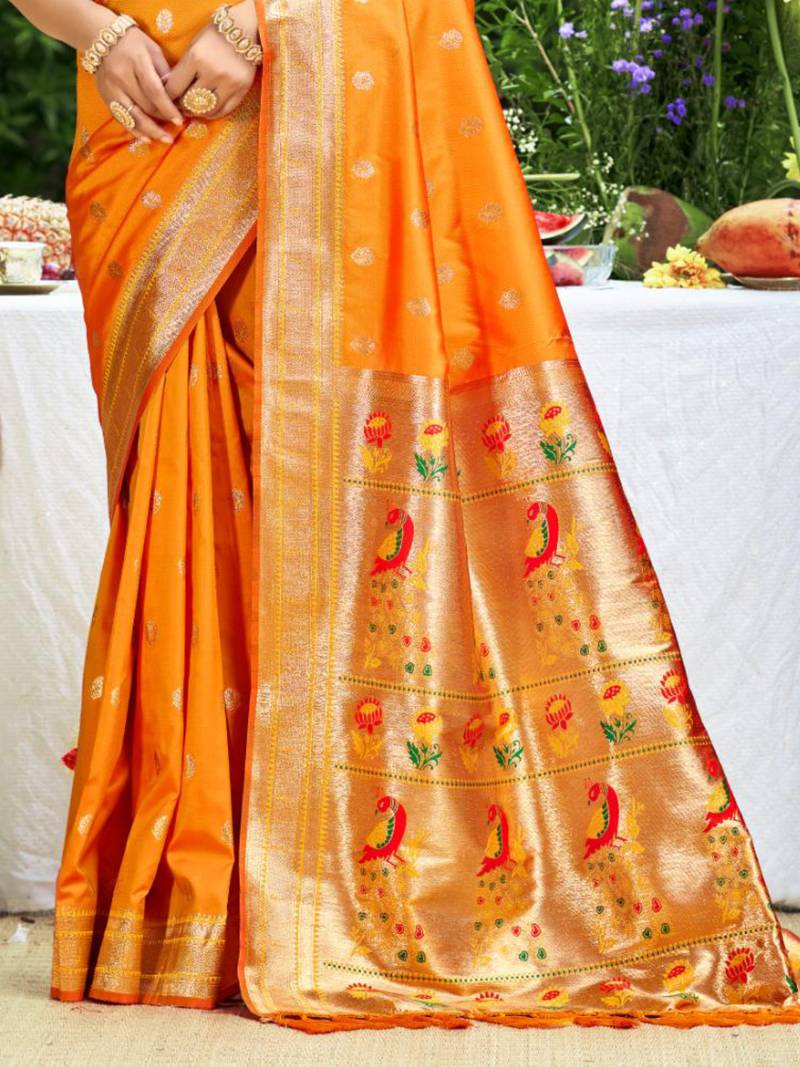 | • | Saree | : | Color- Orange / Fabric- Paithani Silk |