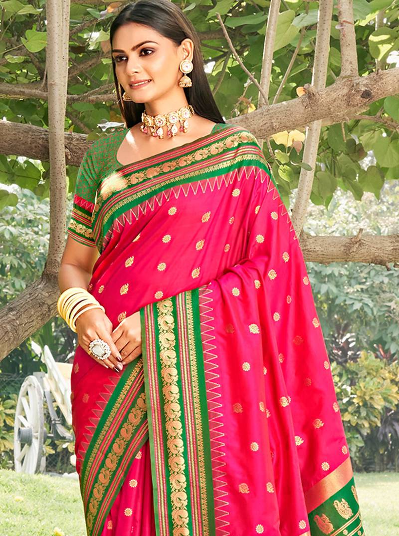 | • | Saree | : | Color- Pink / Fabric- Paithani Silk |