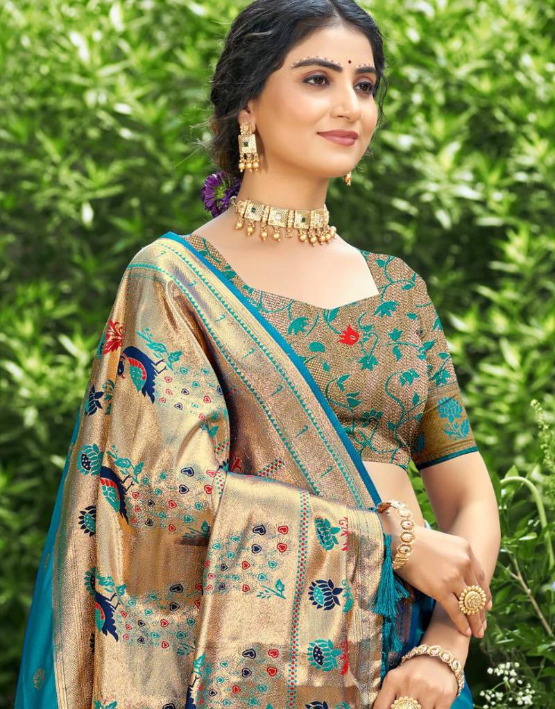 | • | Saree | : | Color- Sea Green / Fabric- Paithani Silk |