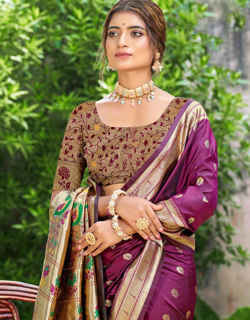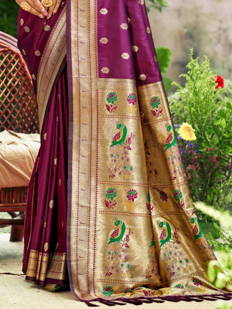 | • | Saree | : | Color- Wine / Fabric- Paithani Silk |