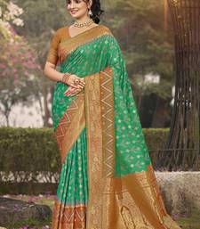 Green pochampalli silk blend saree | elegant traditional wedding & festive wear saree