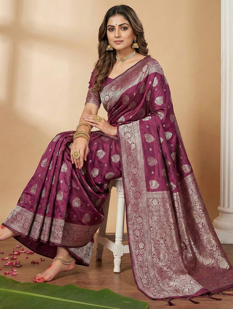 | Product Name | Sutriti Magenta Wine Soft Silk Saree With Silver Zari Details | |