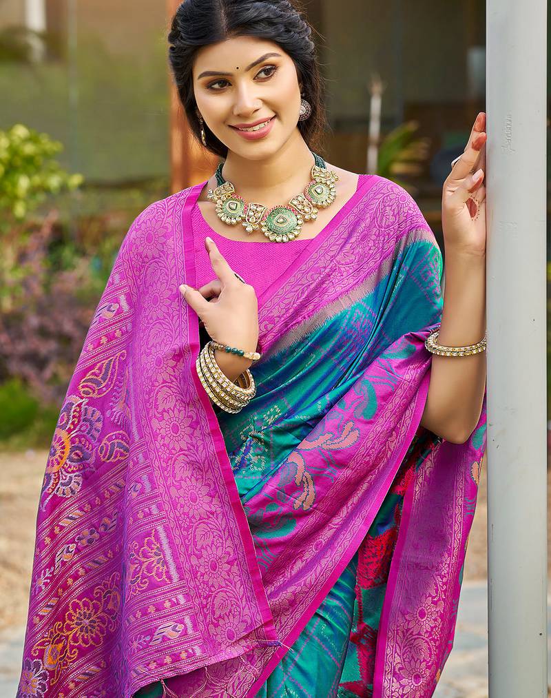 Teal blue pochampalli silk blend saree for women | wedding & festive wear saree