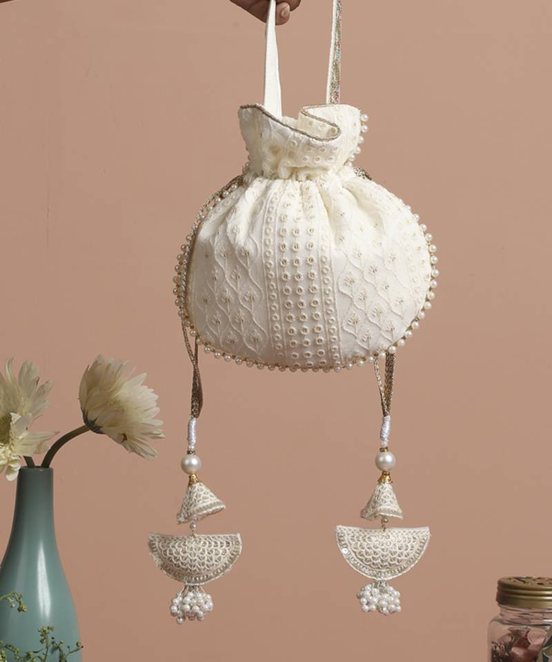 | Product Name | White Georgette With Gold Sequin Potli Bag | |