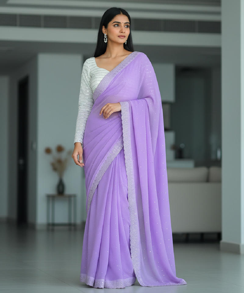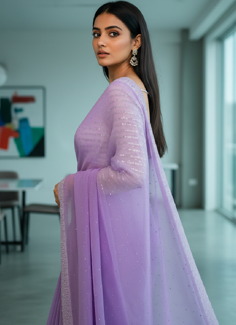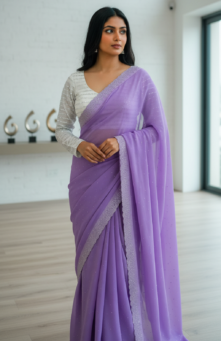 | Product Name | Lilac Faux Georgette Stonework Embroidered Saree With Blouse | |
