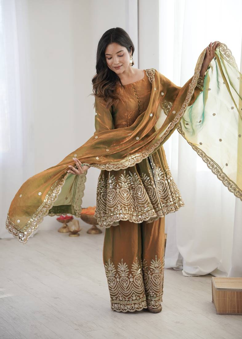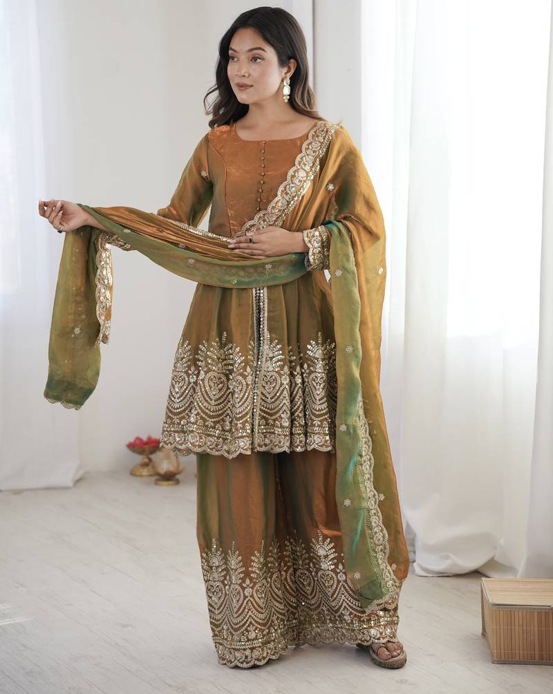☘️🧵 Sharara Details 🧵☘️ • Fabric: Heavy Two Tone Fendy Satin Silk