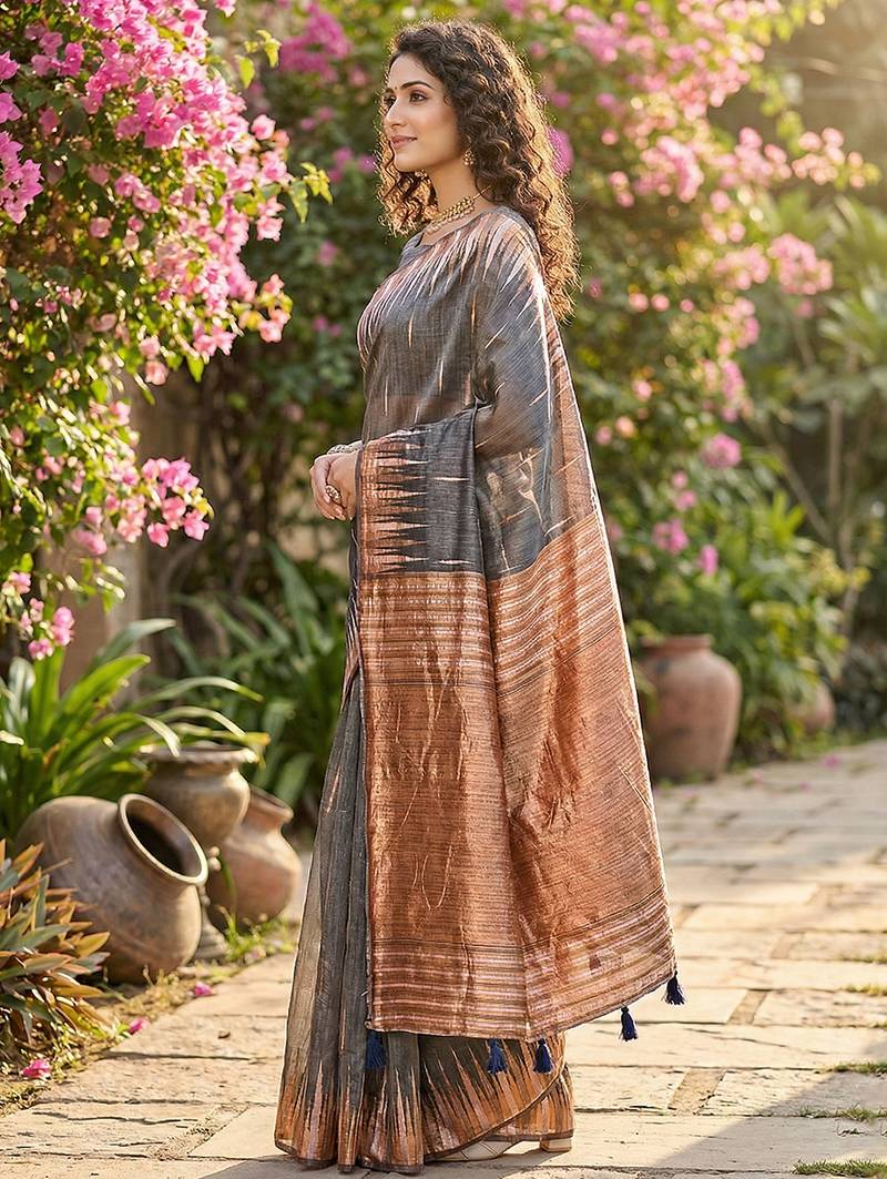 | Product Name | Grey Color Printed Casual Saree With Blouse | |