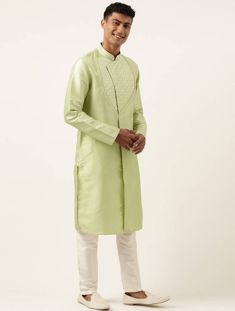 | Product Name | Parrot Green Embroidery Angrakha Kurta Pajama | |