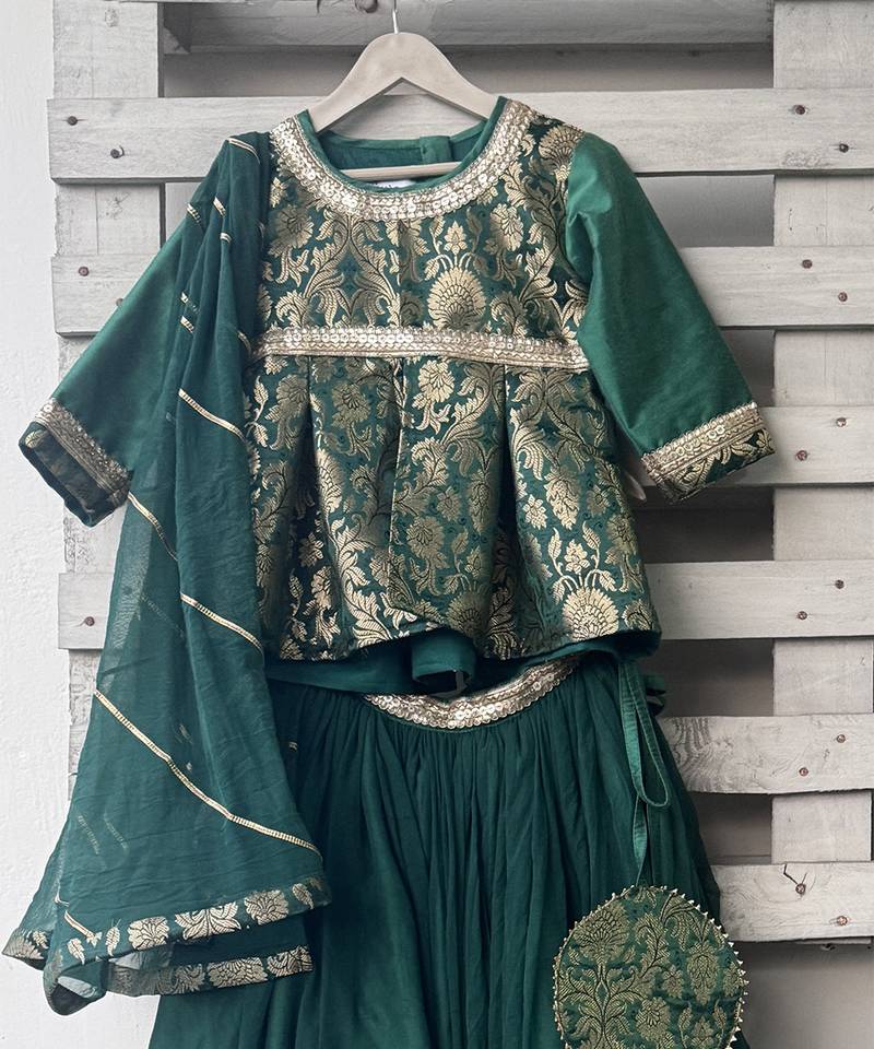 | Product Name | Green Embroidered Cotton Silk Lehenga Set | |